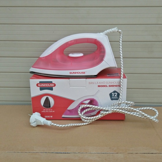 - Bàn là khô SUNHOUSE SHD1072P là thiết bị gia dụng thiết yếu trong mỗi gia đình. Với công suất lớn dễ dàng điều chỉnh bằng núm xoay, mặt bàn là chống dính lướt êm trên mọi mặt vải, dây điện chắc chắn an toàn, sản phẩm có khả năng ủi là nhanh hơn hẳn so với bàn là thường, xóa nhanh các nếp nhăn quần áo mà không làm phai màu, giữ mùi thơm của quần áo lâu dài.