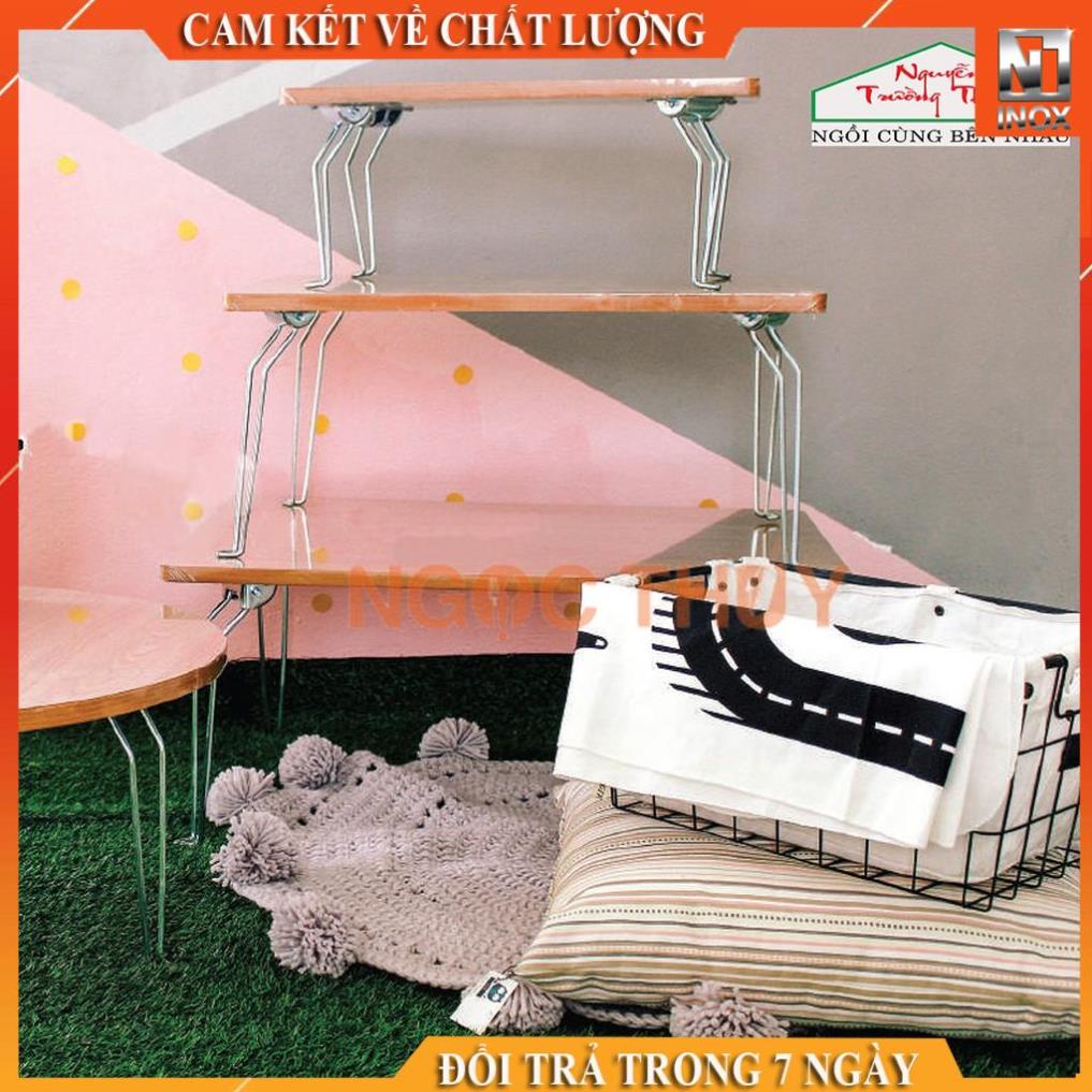 Bàn vân gỗ xếp gọn 4 chân sắt| Bàn xếp sinh viên ngồi đất vân gỗ