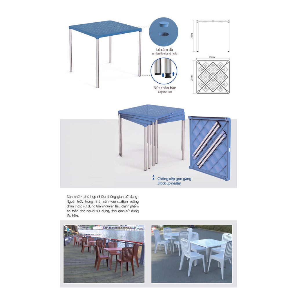 Nhà cửa & Đời sống > Nội thất > Bàn || Bàn vuông nhựa chân inox cao cấp Duy TânCòn hàng