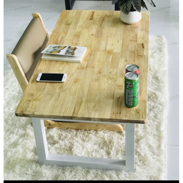 Mặt bàn: Kích Thước rộng 60cm dài 1m2, ván cao su tự nhiên ghép dày 18mm , đã bo cạnh, phủ keo 2 mặt đẹp.