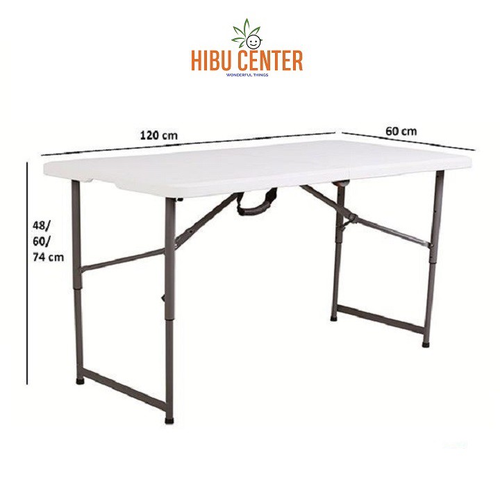 - Bàn xếp chữ nhật Thanh Long HM-FH120 120 x 60 x 52.5/74 cm có mặt bàn sử dụng nhựa cao cấp HDPE có độ dày 3,5cm và chân bàn sử dụng sắt sơn tĩnh điện 25 x 1mm.