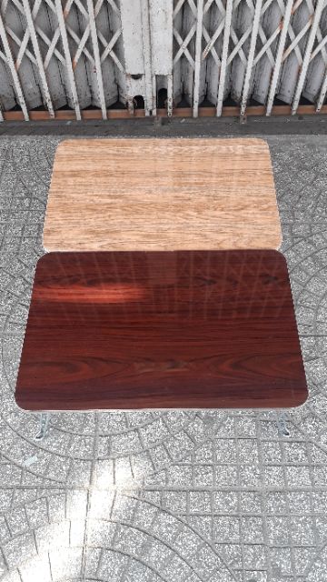 Bàn xếp vân gỗ cao cấp, cao 28cm, chân sắt xếp lại khi không sử dụng, giúp tiết kiệm không gianKích thước bàn : 40x60 ( cm) giá 135.000 đ