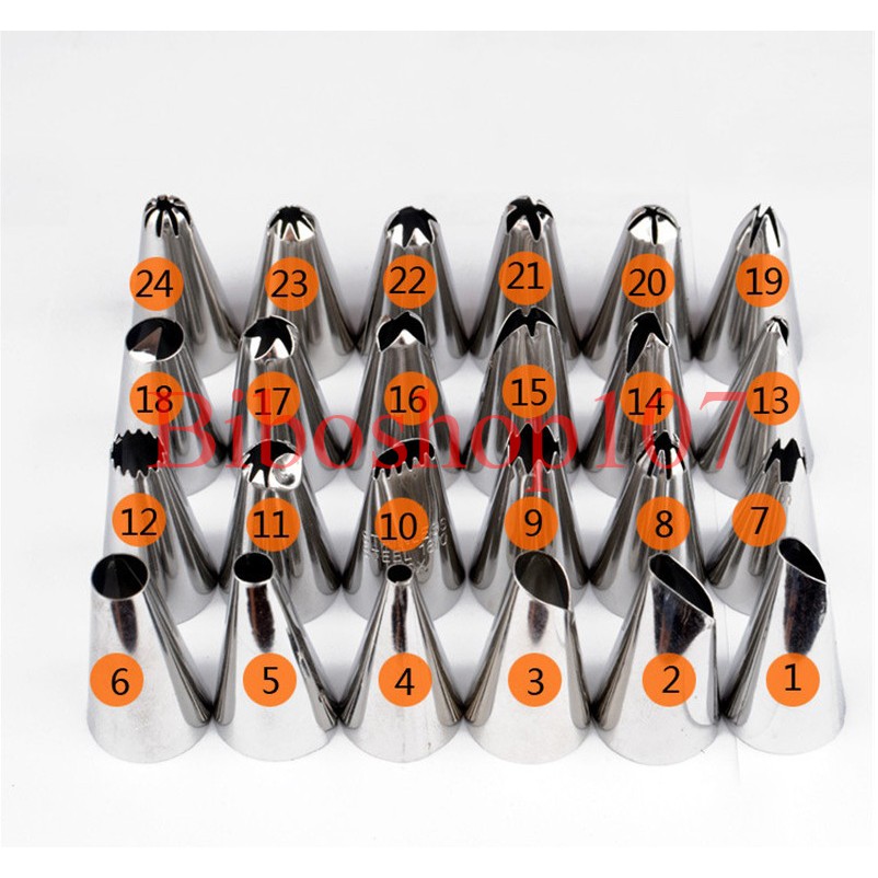 - Bộ 24 đui bắt kem inox kèm chốt