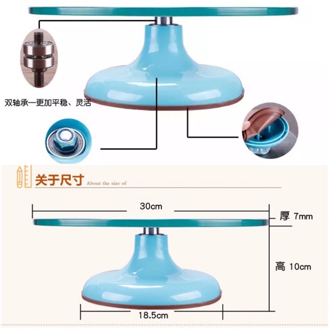 Chất đẹp Sản phẩm có mặt kính dày 1 cm xoay tiện dụng giúp bạn dễ dàng trang trí chiếc bánh, có đế là chân cao su an toàn giữ được lâu, mà lại rất dễ sử dụng và bảo quảnCông dụng : giúp bạn linh hoạt trong việc di chuyển xoay để trang trí bánh kem 1 cách thuận tiện nhất