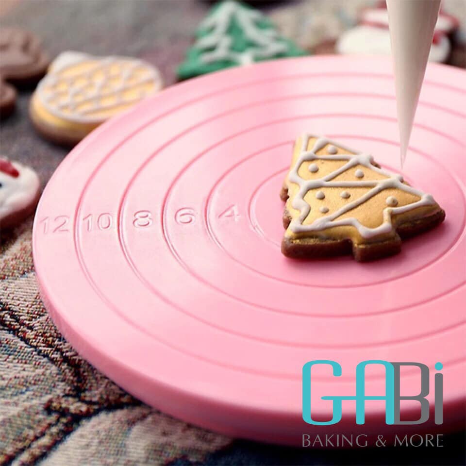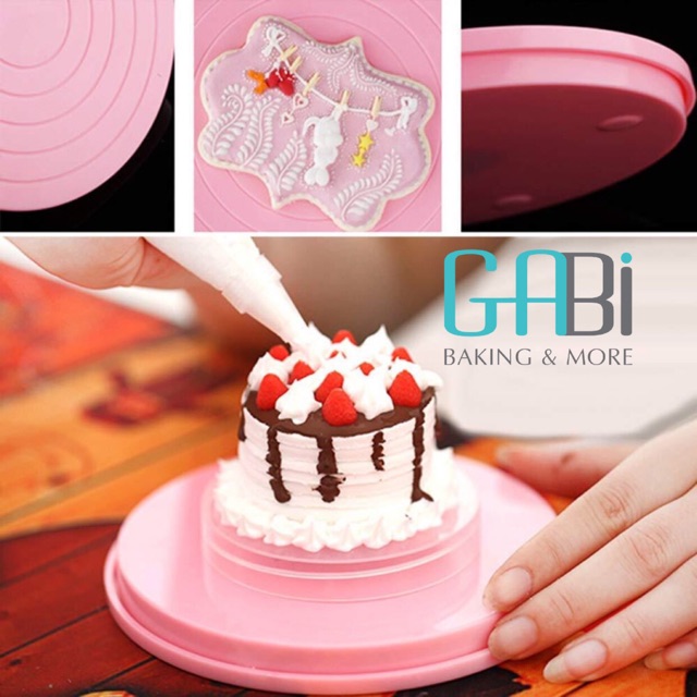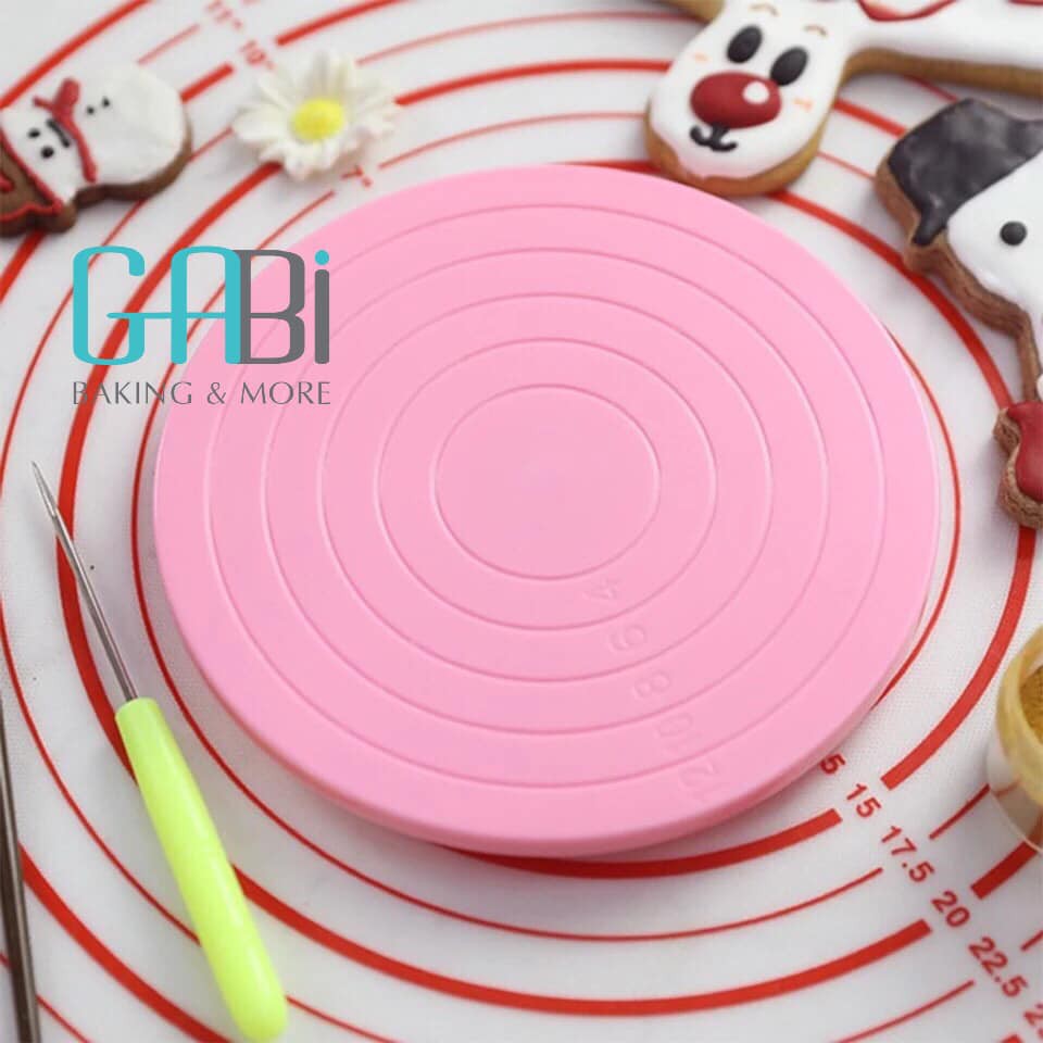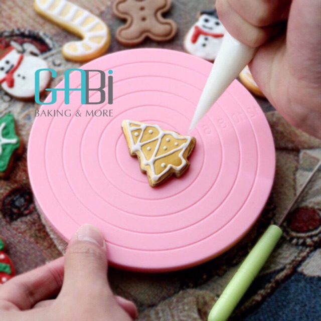 Giúp cho việc trang trí bánh trở nên dễ dàng hơn. Bàn xoay có kích thước nhỏ phù hợp với những chiếc bánh gato nhỏ, bánh quy vẽ, làm fondantChất liệu: nhựa