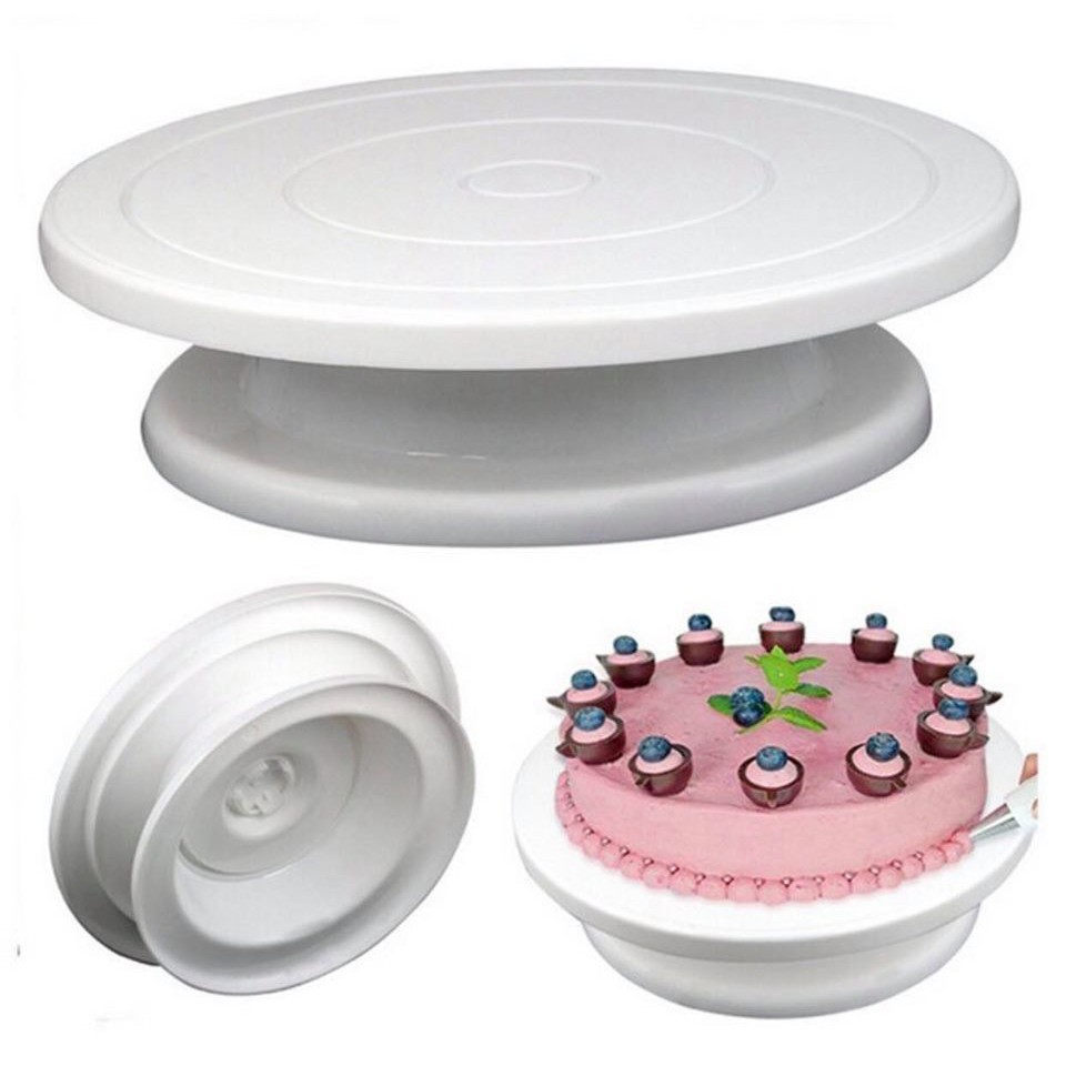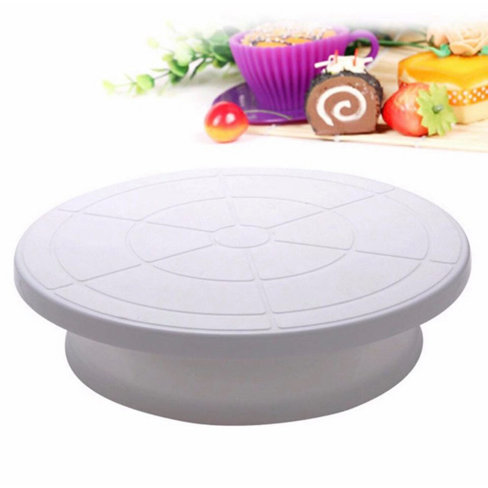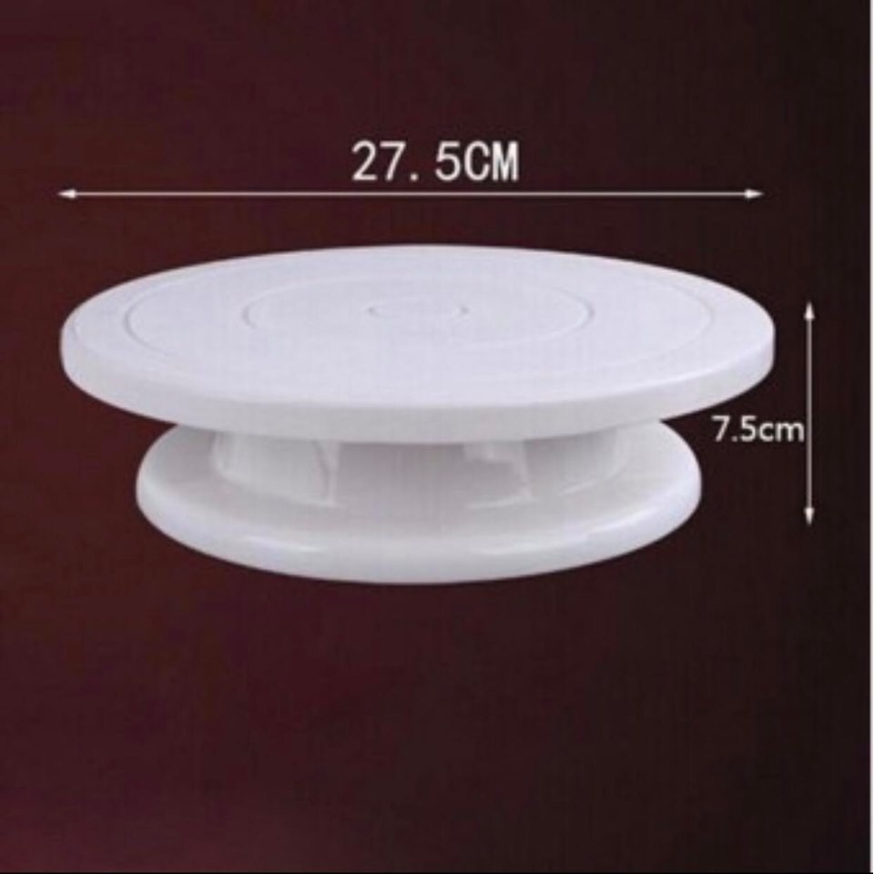 Bàn xoay được làm từ nhựa cứng cao cấp bền đẹp và chắc chắn. Gồm 2 bộ phận: mặt xoay và chân xoay. Đế cao vừa tầm giúp bạn xoay và bắt kem dễ dàng Bạn chỉ cần đặt cốt bánh lên và xoay đều và sử dụng các dụng cụ như đui bắt kem, miếng tạo vân, hay miếng chà láng… để tạo nên những hoa văn, họa tiết xinh xắn đều và đẹp như ý nhé. Mặt bàn xoay 28cm, vừa với các cỡ bánh cơ bản thông dụng là 15,18,20,22cm.