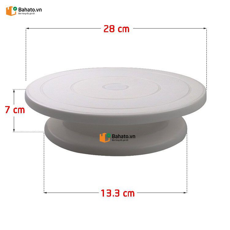 Bàn xoay nhựa 28cm được làm nhựa PP cao cấp đế thấp giúp bạn trang trí hoa, lá, đường viền lên bánh dễ dàng hơn. Ngoài ra bạn có thể dùng làm bàn xoay chụp ảnh 360 độ.- Đường kính mặt bàn: 28cm