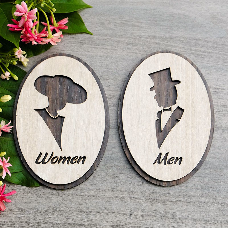 Nhà cửa & Đời sống > Đồ dùng phòng tắm > Bồn cầu, ghế và nắp bồn cầu || Bộ bảng 2 cái WC Nam + Nữ hướng dẫn toilet gỗCòn hàng