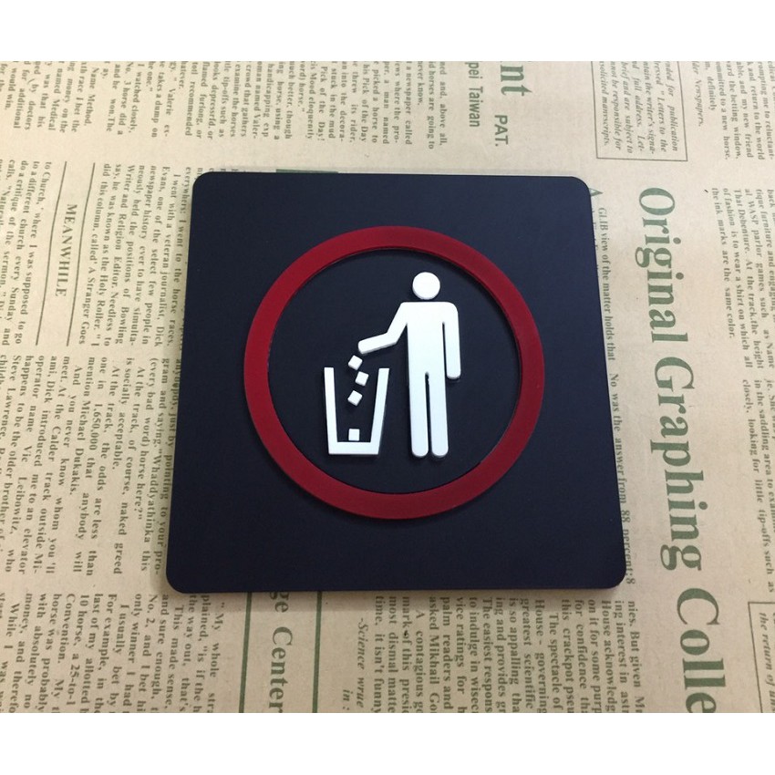 Bảng báo hiệu bỏ rác vào thùng giữ vệ sinh chung, dán tường độc đáo