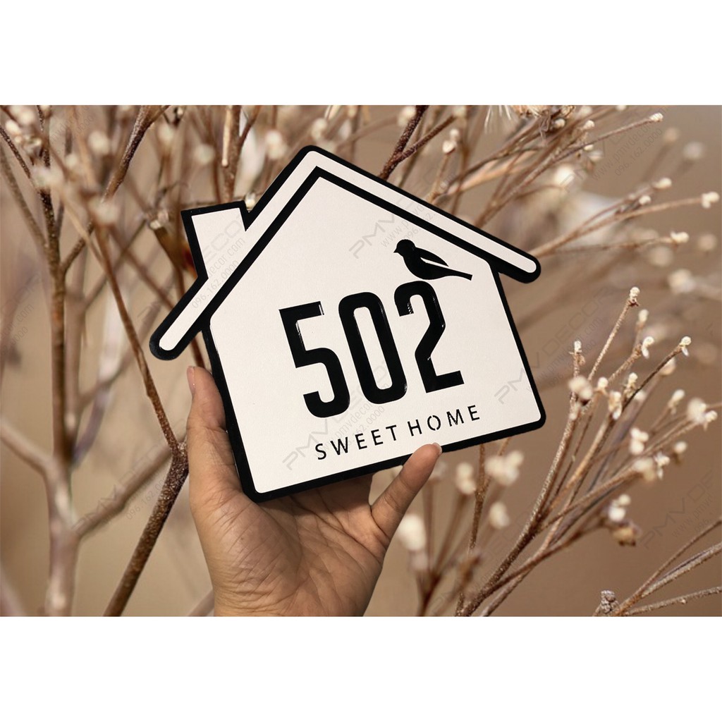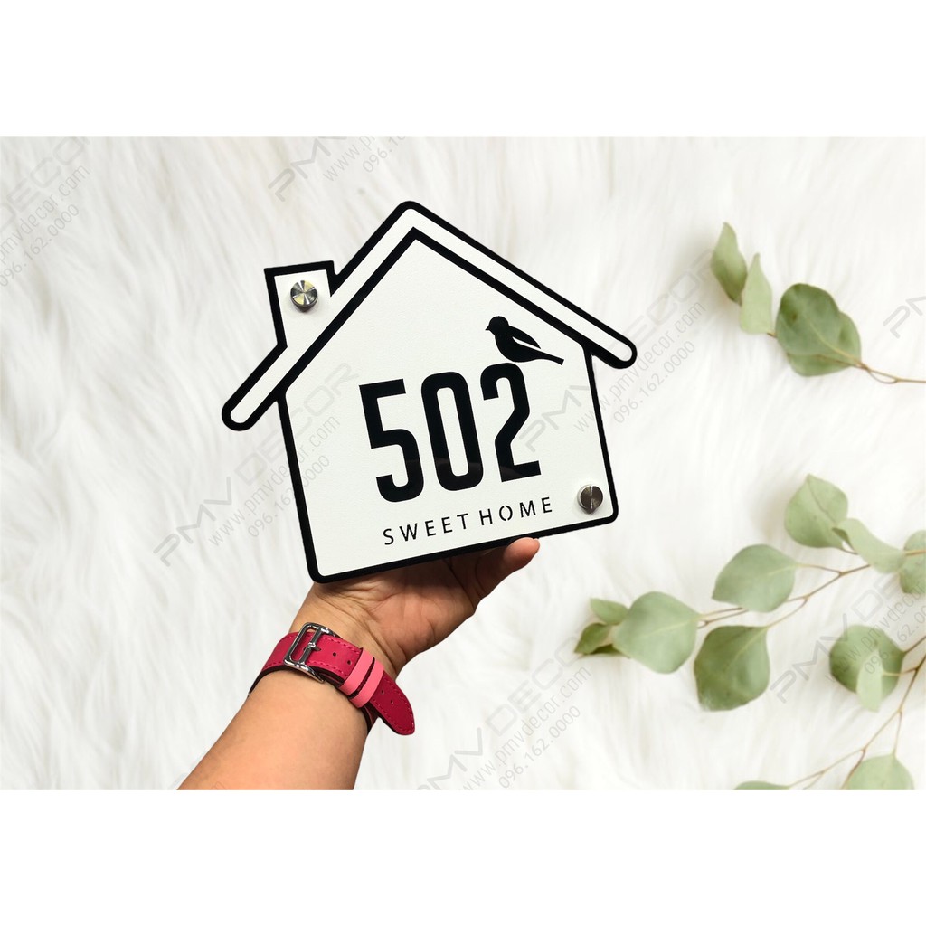 Nhà cửa & Đời sống > Nội thất > Khác || BẢNG, BIỂN SỐ NHÀ. Alcorest đen + mica cán trắng sần, số chìm, ngoài trời, sang trọng tinh tế. BSN-PMV188Còn hàng