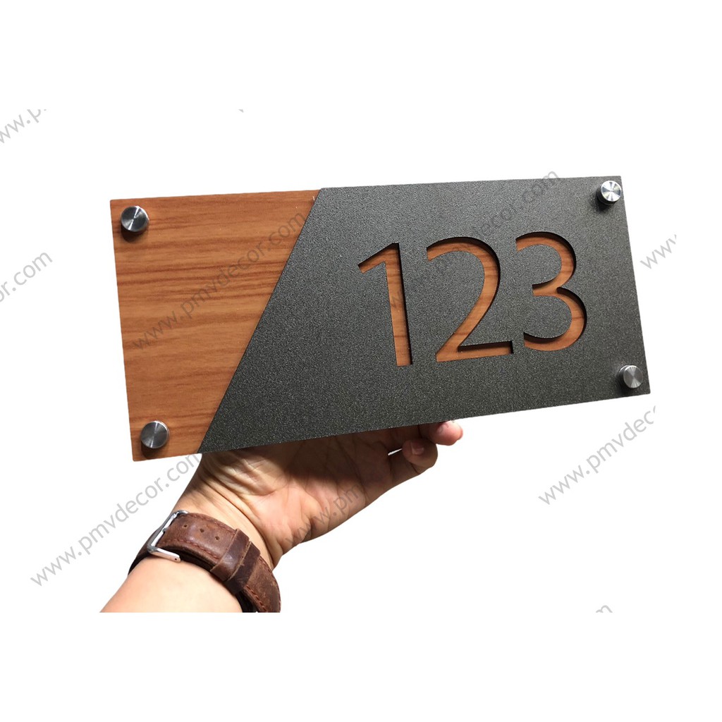 Nhà cửa & Đời sống > Nội thất > Khác || BẢNG, BIỂN SỐ NHÀ. Alcorest vân gỗ + mica cán ghi sần, số chìm,ngoài trời, BSN-PMV166Còn hàng