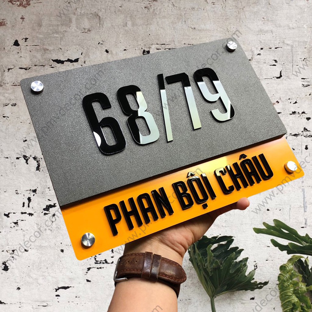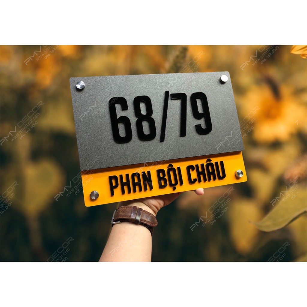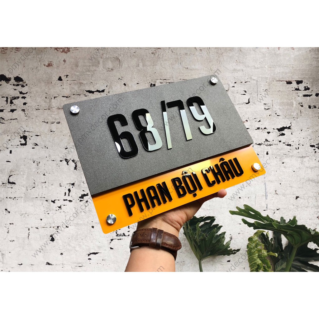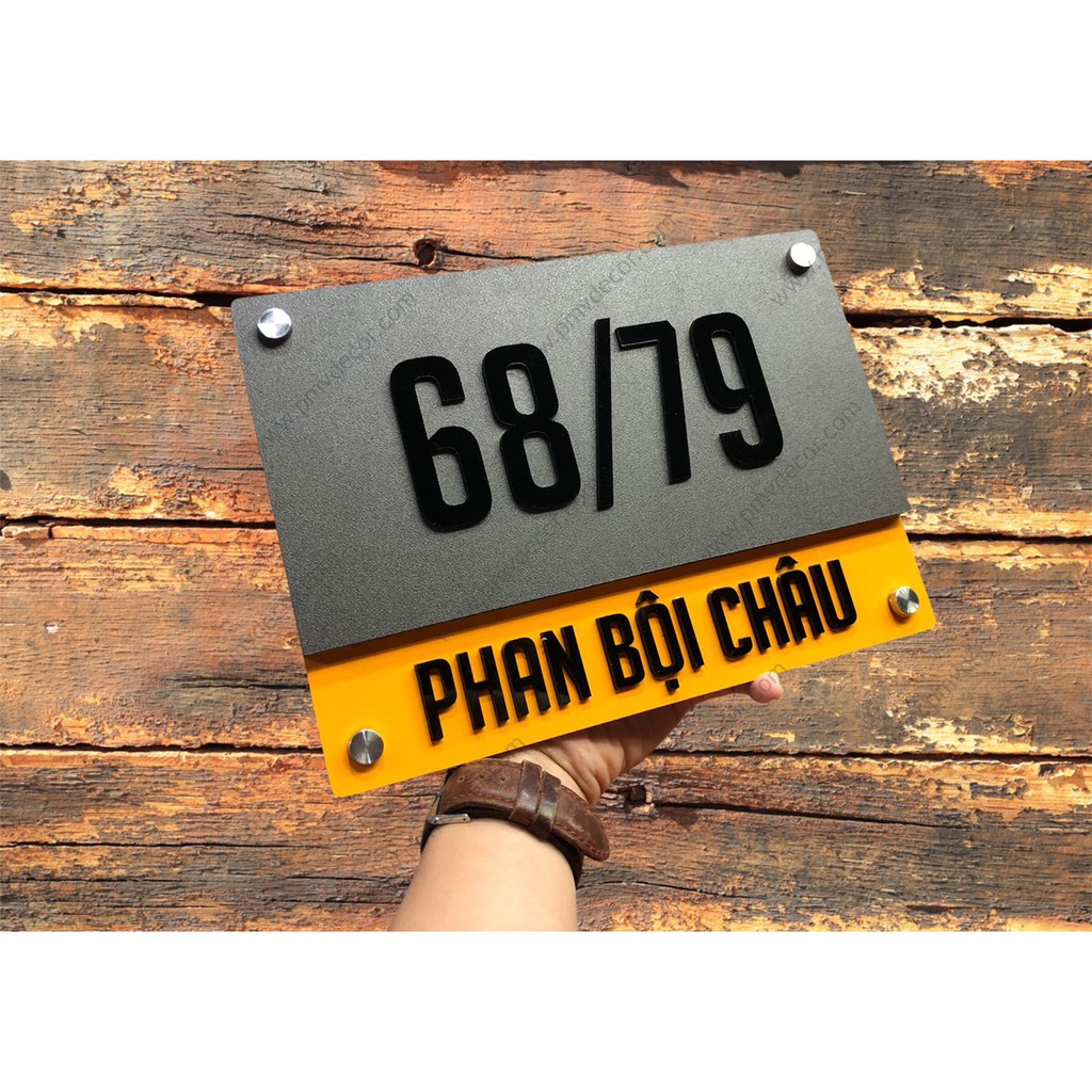 Nhà cửa & Đời sống > Nội thất > Khác || BẢNG, BIỂN SỐ NHÀ. Alcorest Vàng + Mica cán ghi sần đế mica trong 5mm, ngoài trời, BSN-PMV162Còn hàng