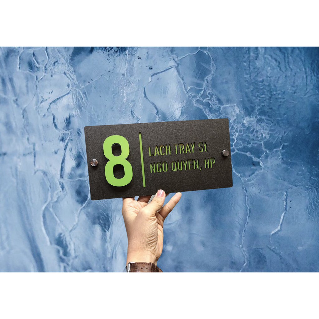 Nhà cửa & Đời sống > Nội thất > Khác || BẢNG, BIỂN SỐ NHÀ. Alcorest Xanh cốm Mica ghi sần , số nổi 1cm, ngoài trời, BSN-PMV159Còn hàng