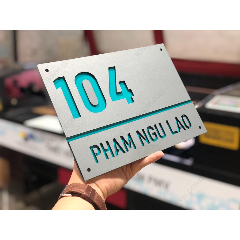 Nhà cửa & Đời sống > Nội thất > Khác || BẢNG, BIỂN SỐ NHÀ. Alcorest xanh + Mica ghi sần, số chìm, ngoài trời. BSN-PMV59Còn hàng