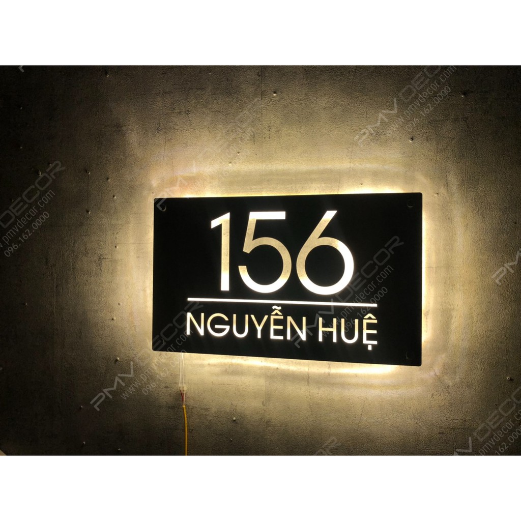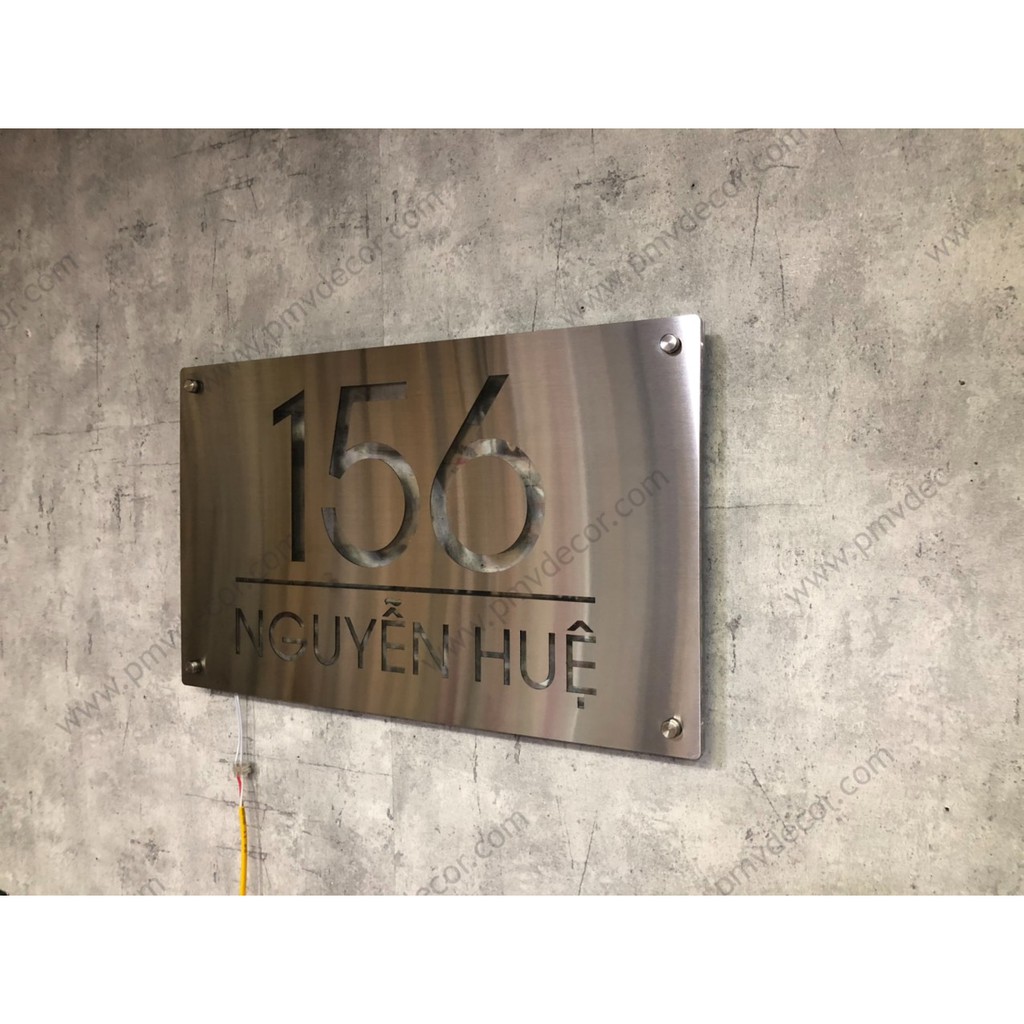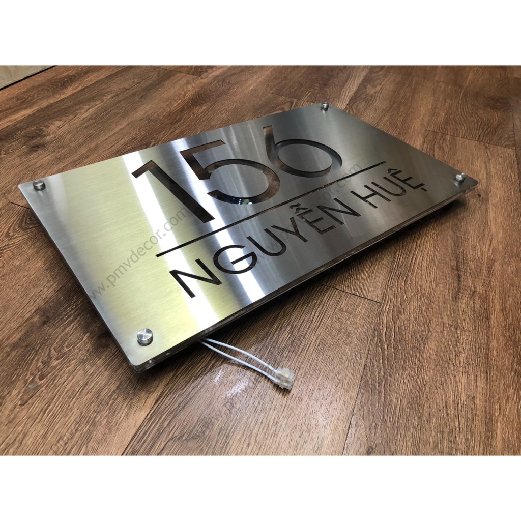 Nhà cửa & Đời sống > Nội thất > Khác || BẢNG, BIỂN SỐ NHÀ. Inox + Mica , có đèn led hắt sáng chân, chi tiết chìm, nội dung yêu cầu, để ngoài trời, BSN-PMV144Còn hàng