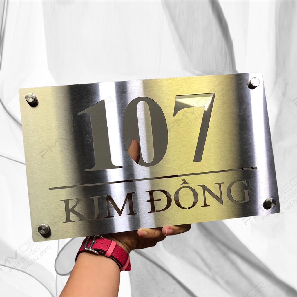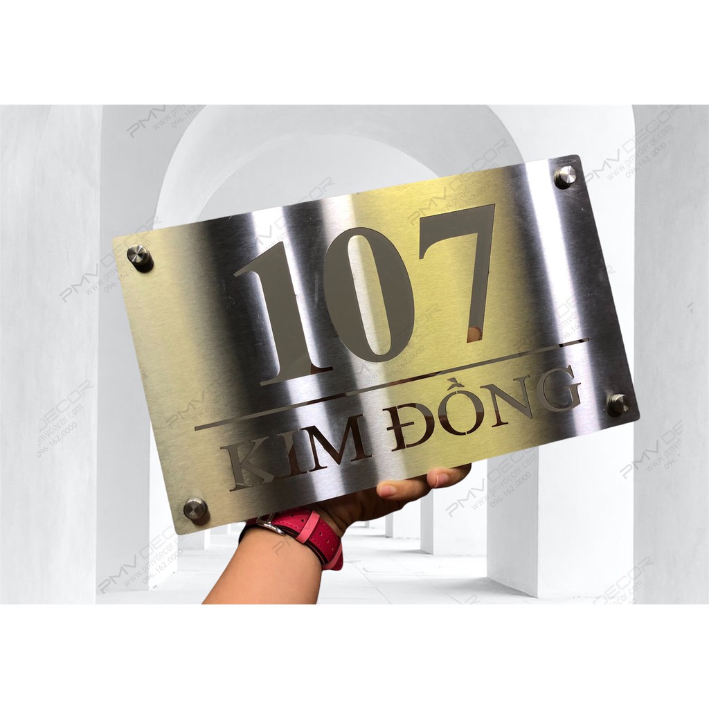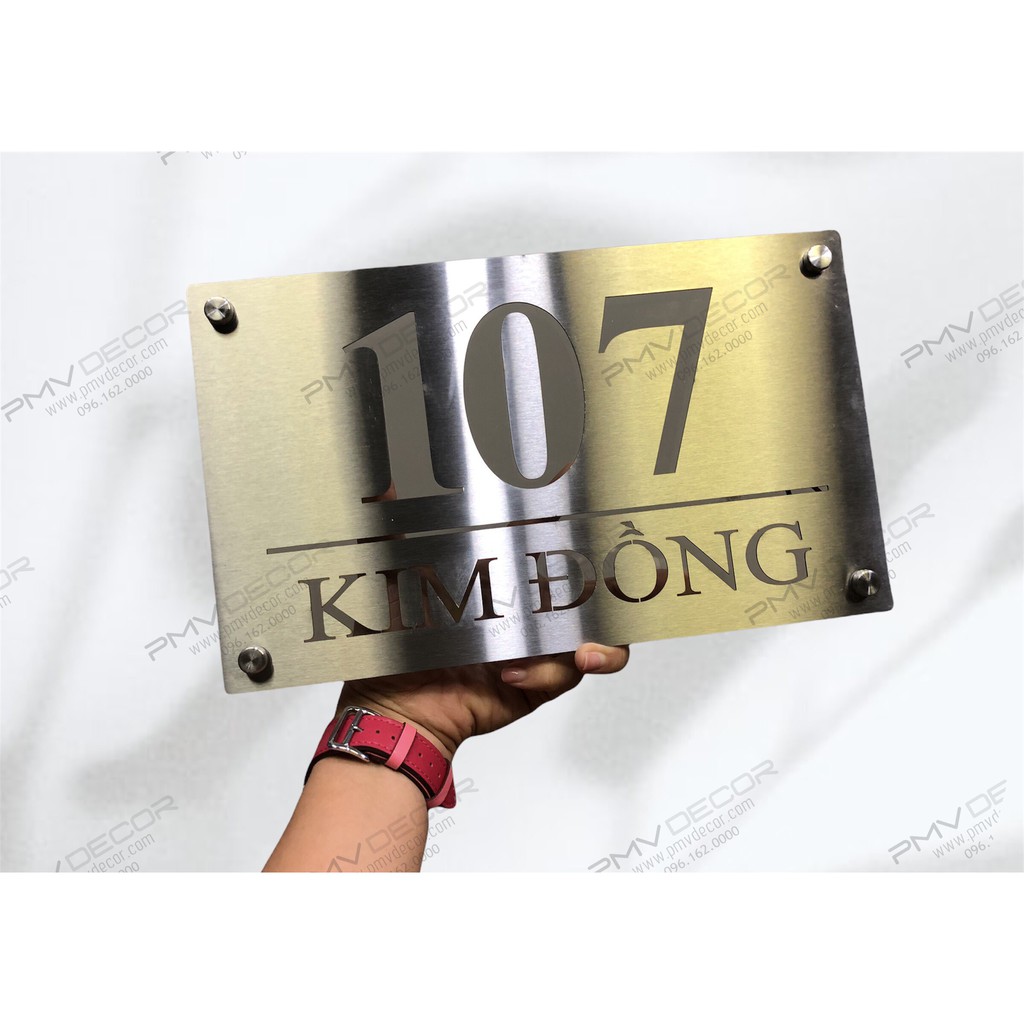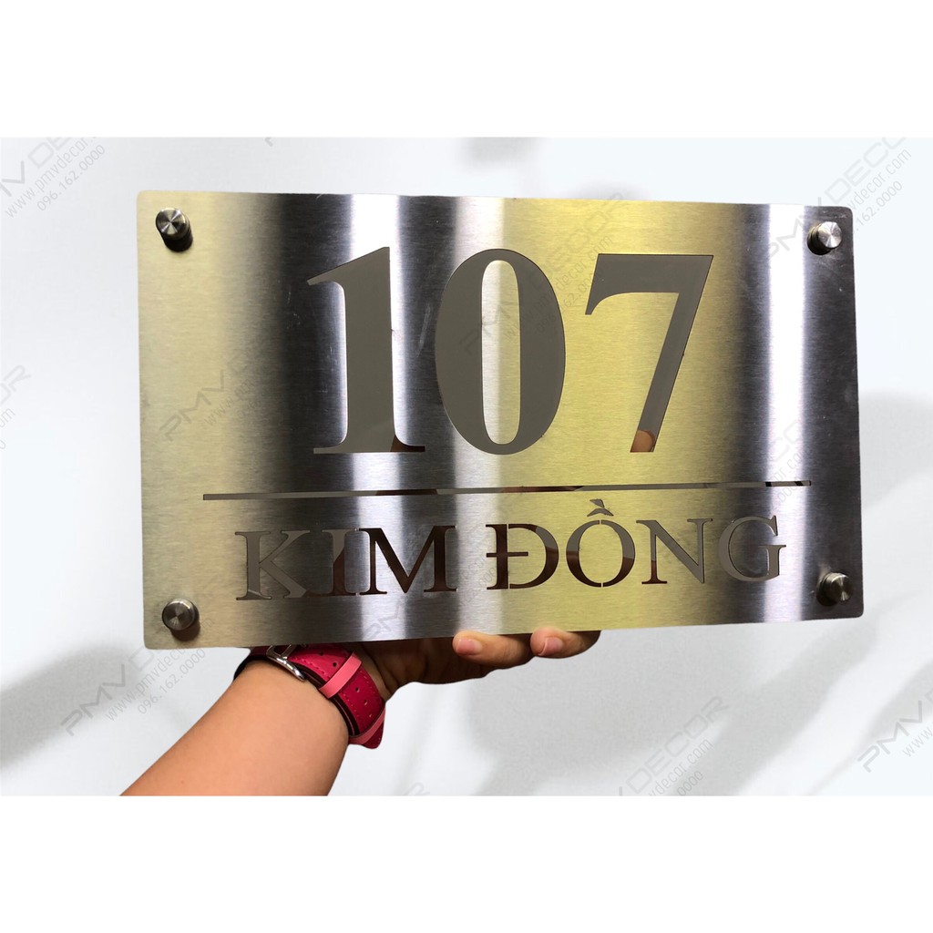 Nhà cửa & Đời sống > Nội thất > Khác || BẢNG, BIỂN SỐ NHÀ. Inox xước, nội dung âm bản, đế mica trong 5mm, ngoài trời sang trọng tinh tế. BSN-PMV184Còn hàng