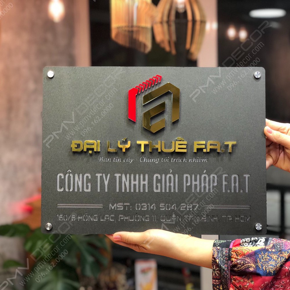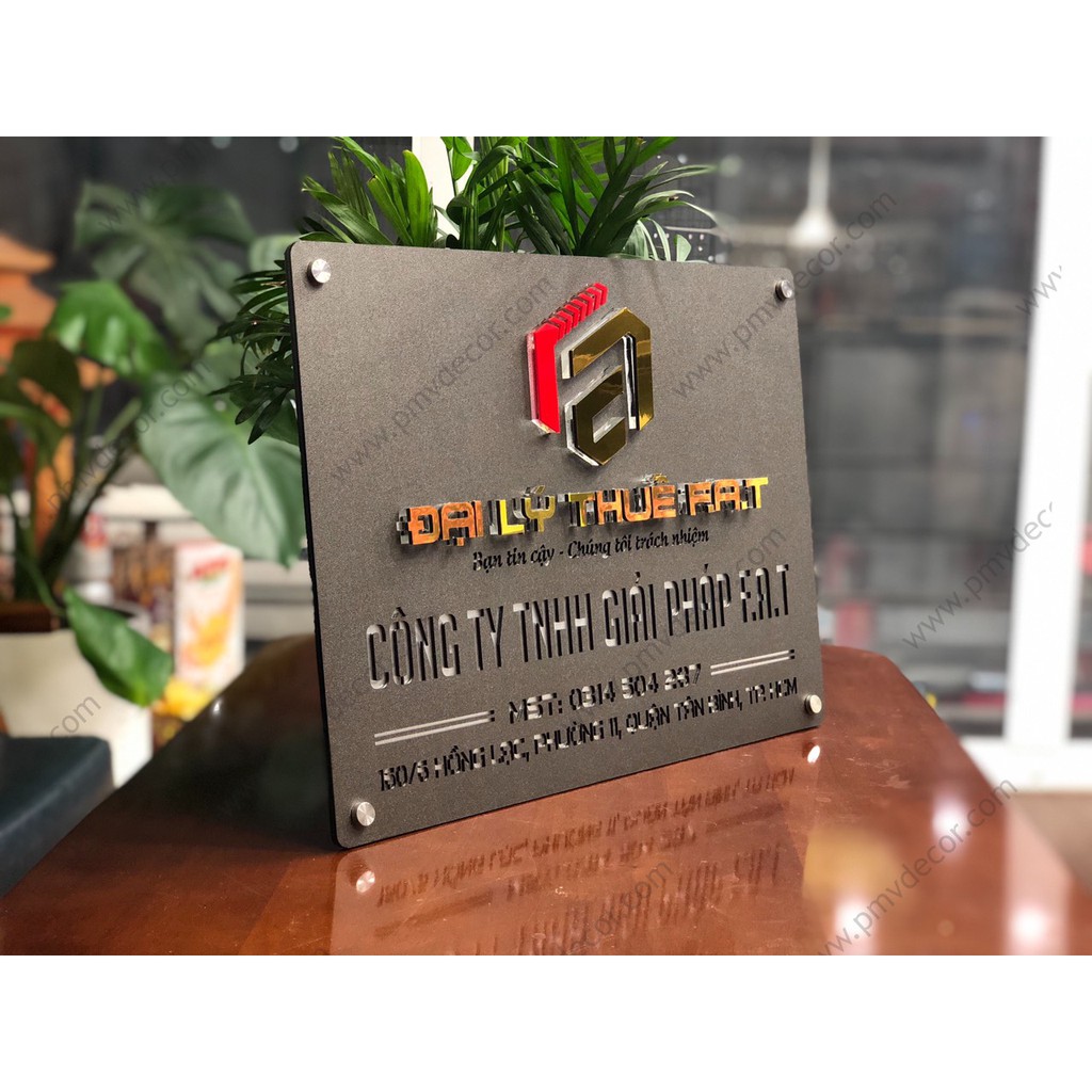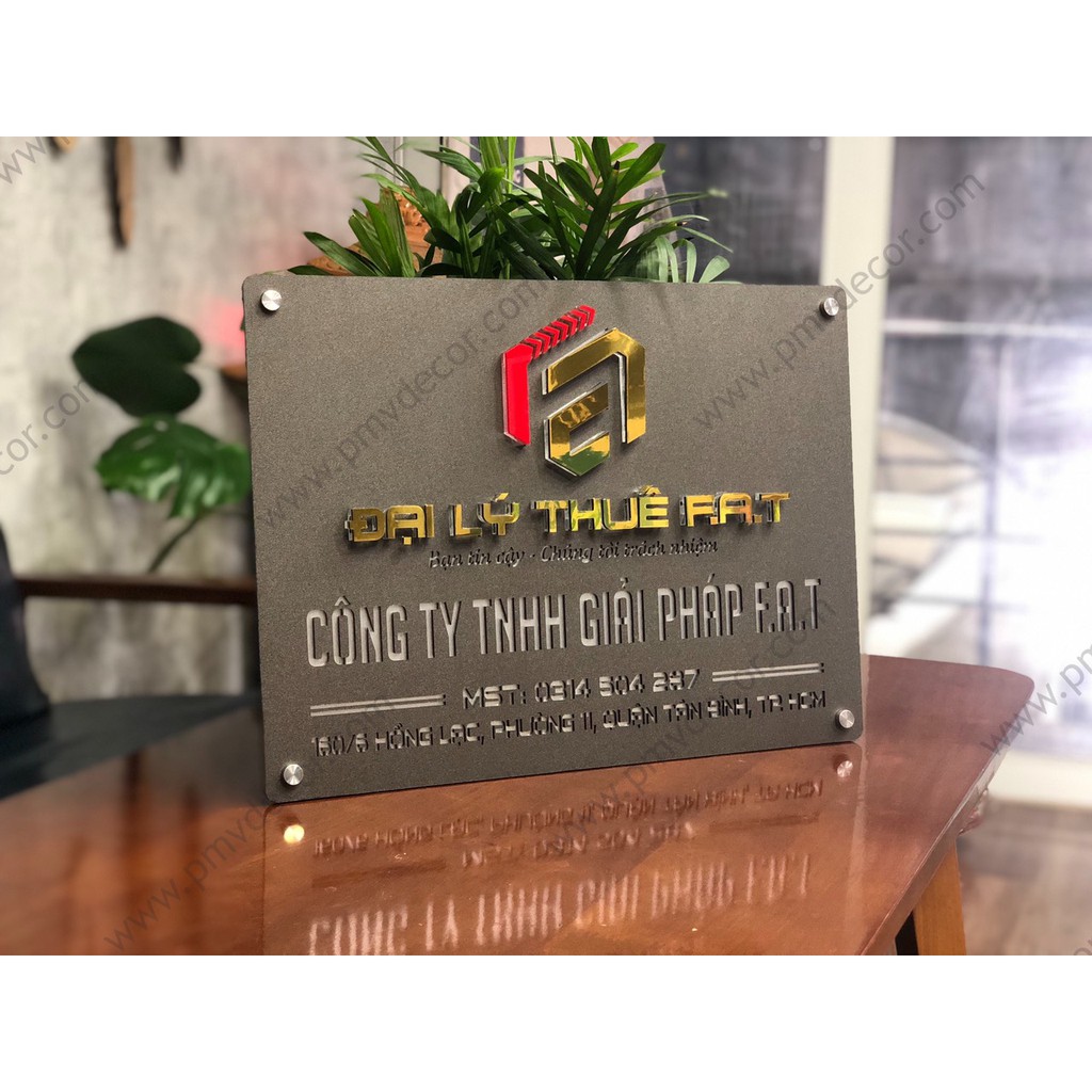 Nhà cửa & Đời sống > Nội thất > Khác || BẢNG, BIỂN TÊN CÔNG TY. Alcorest + mica cán ghi, chi tiết nổi đế mica trong 8mm màu theo yêu cầu, ngoài trời, BCT-PMV142Còn hàng