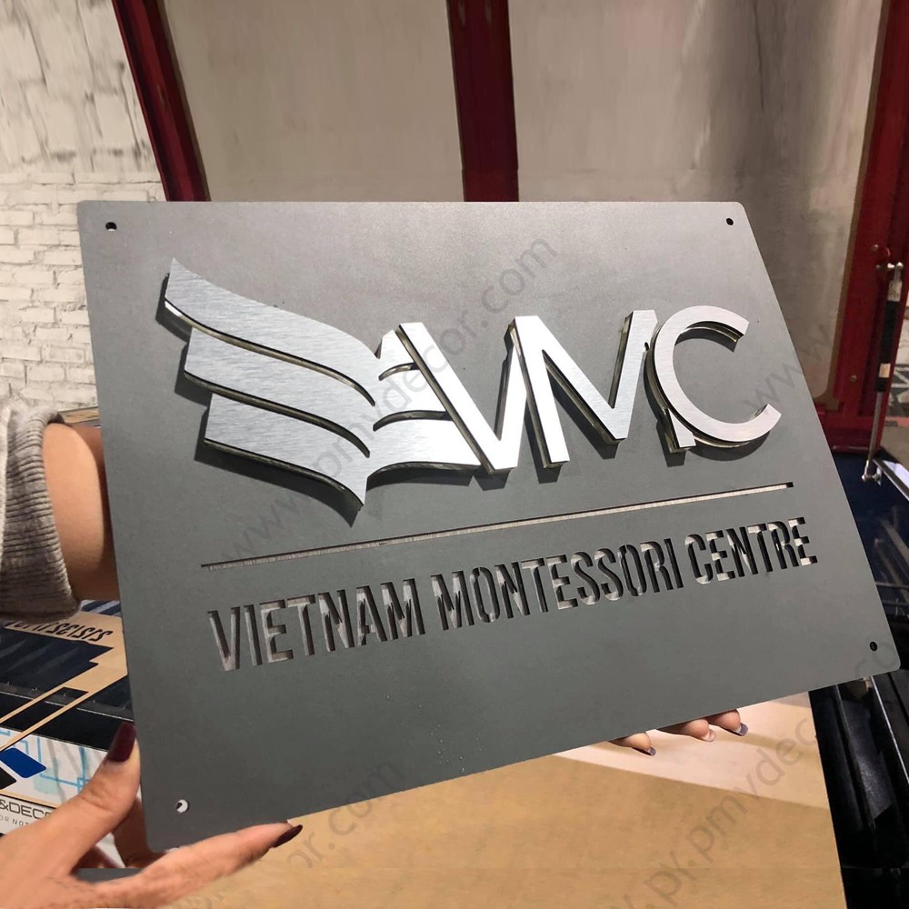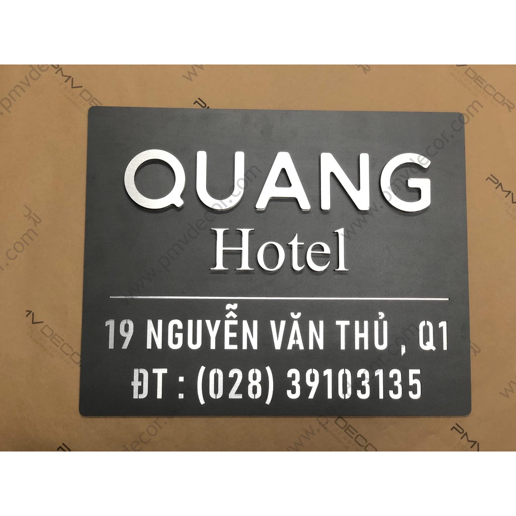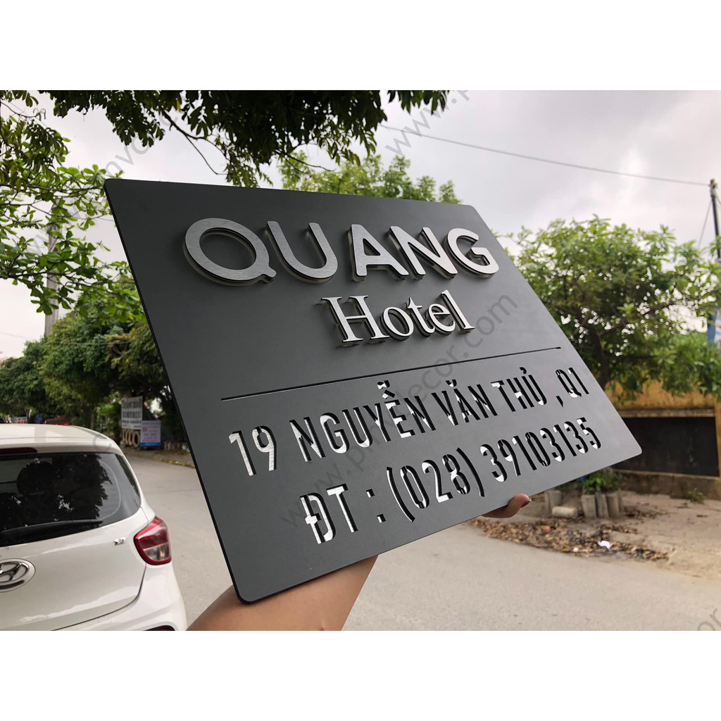 Nhà cửa & Đời sống > Nội thất > Khác || BẢNG, BIỂN TÊN CÔNG TY. Alcorest + Mica ghi sần, chi tiết dán nổi đế mica trong 1cm, BCT-PMV61Còn hàng