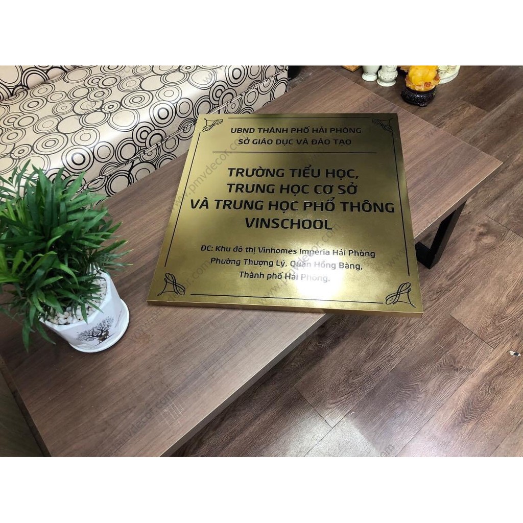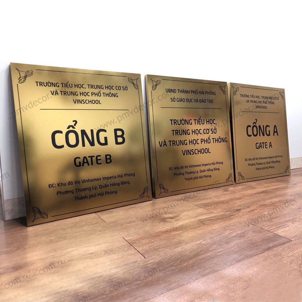Nhà cửa & Đời sống > Nội thất > Khác || BẢNG, BIỂN TÊN CÔNG TY, inox vàng in UV, dựng chân 18mm sơn mờ. Ngoài trời. BCT-PMV174Còn hàng
