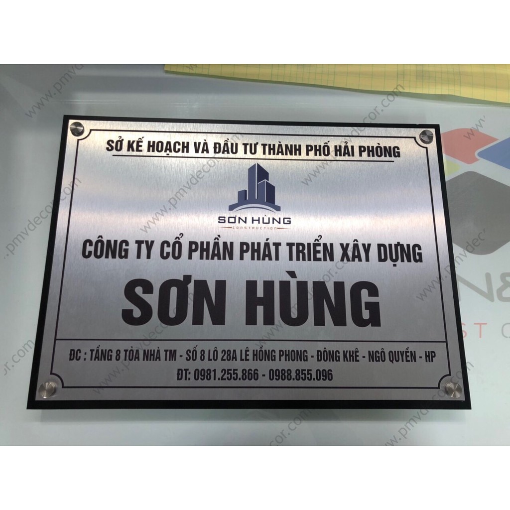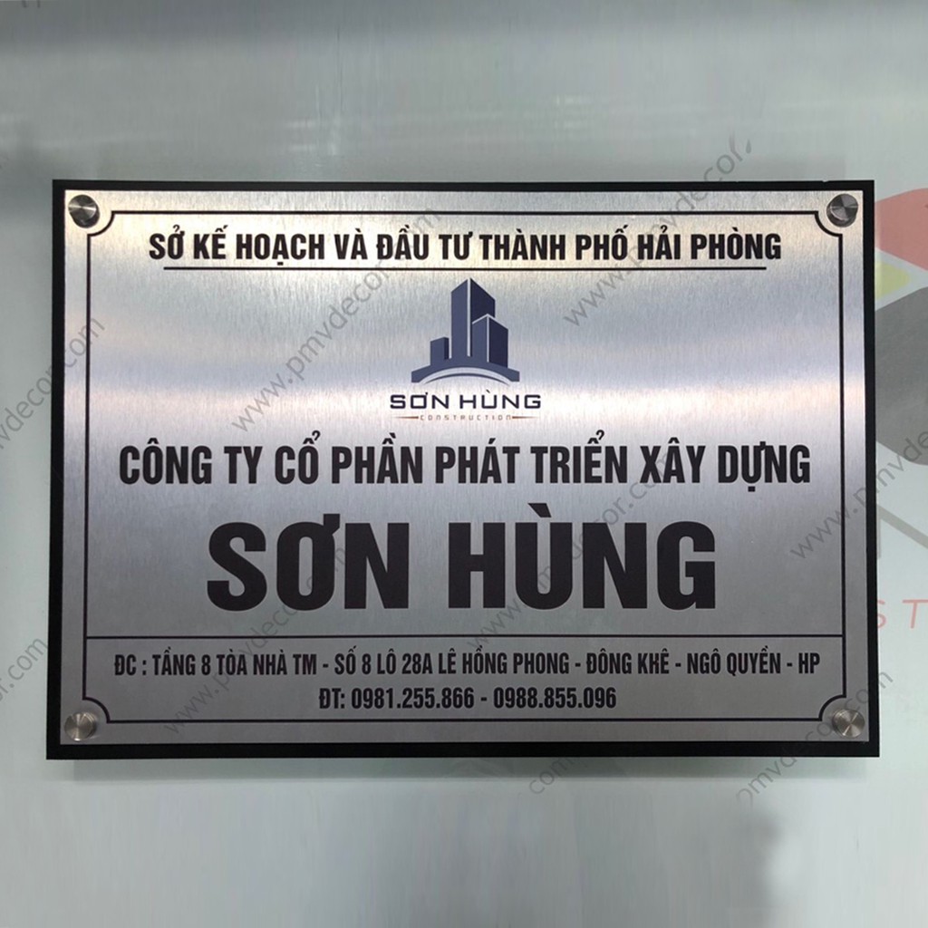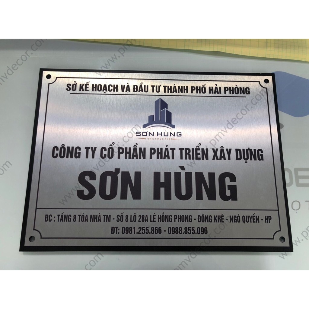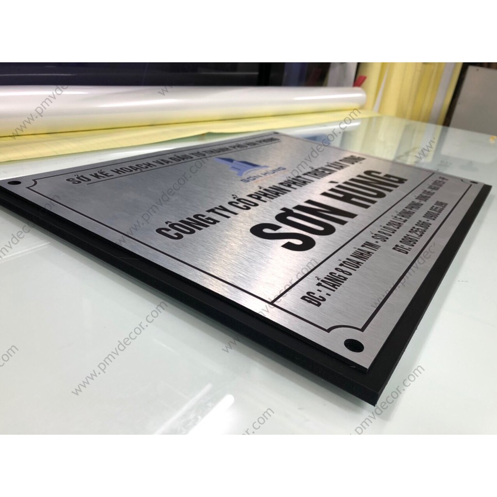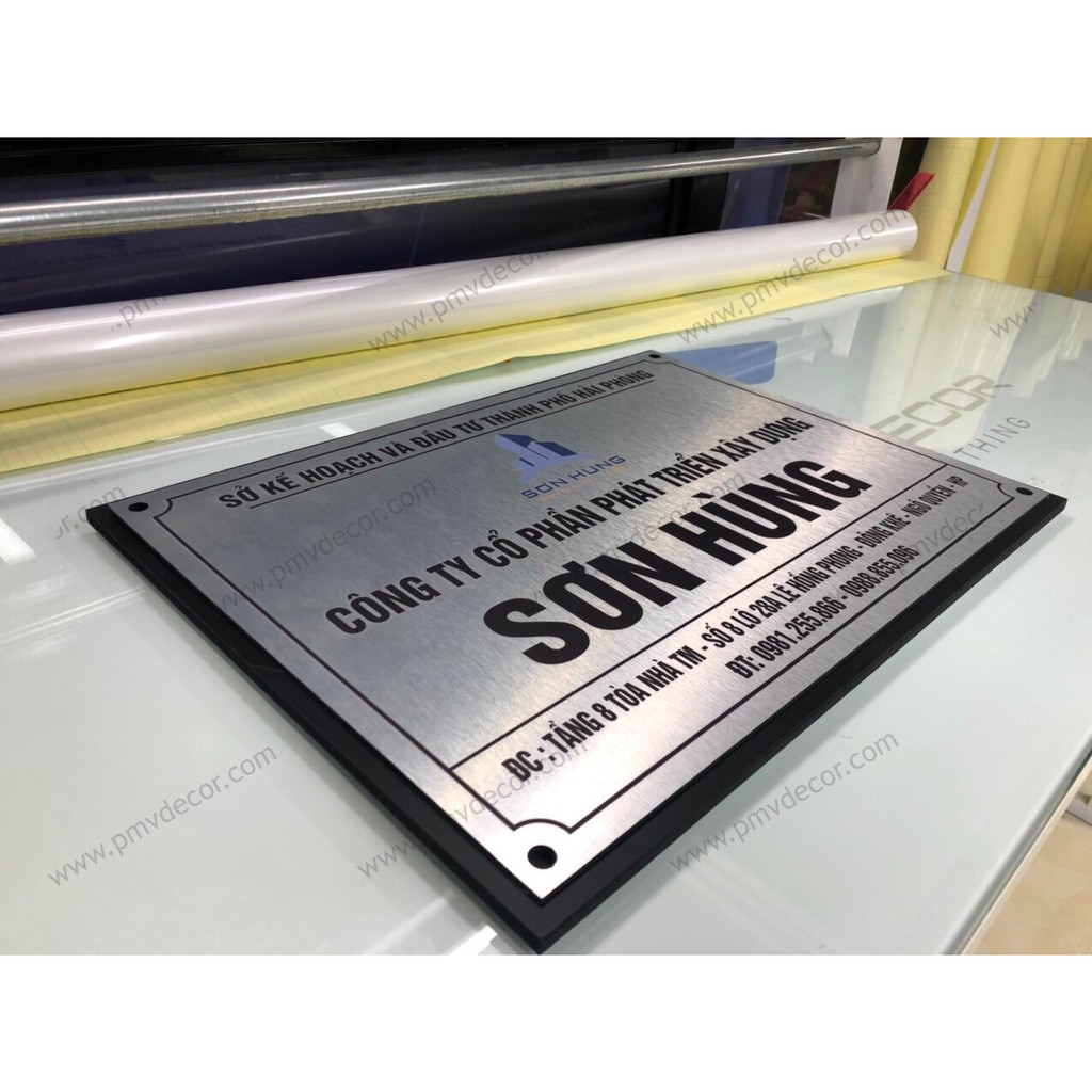 Nhà cửa & Đời sống > Nội thất > Khác || BẢNG, BIỂN TÊN CÔNG TY, inox trắng xước in UV, Đế Picomax dày 8mm sơn màu. Ngoài trời. BCT-PMV173Còn hàng