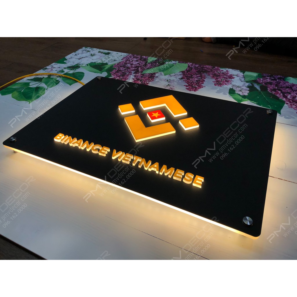 BẢNG, BIỂN TÊN CÔNG TY. Size 60*40cm, Mica có đèn led hắt sáng chân, chi tiết nổi theo nội dung yêu cầu. BCT-PMV108