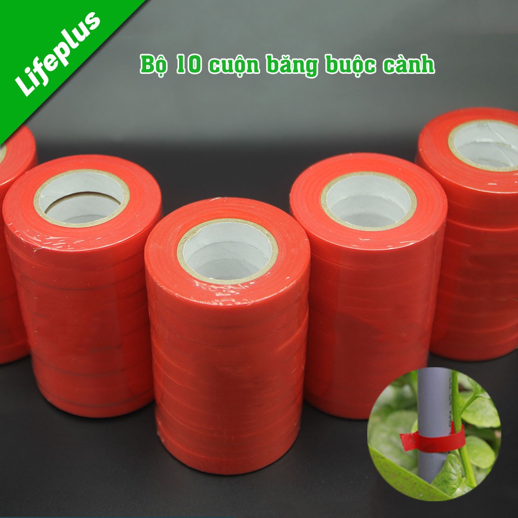 Băng buộc cành cây làm từ màng nhựa PVC giúp cho mối buộc cành tiện lợi, thẩm mỹ, có khả năng co dãn khi cây lớn. Khi mua một cọc 10 cuộn băng buộc cành vừa có thể dự trữ khi cần lại vừa có thể thể tiết kiệm được tiền vận chuyển
