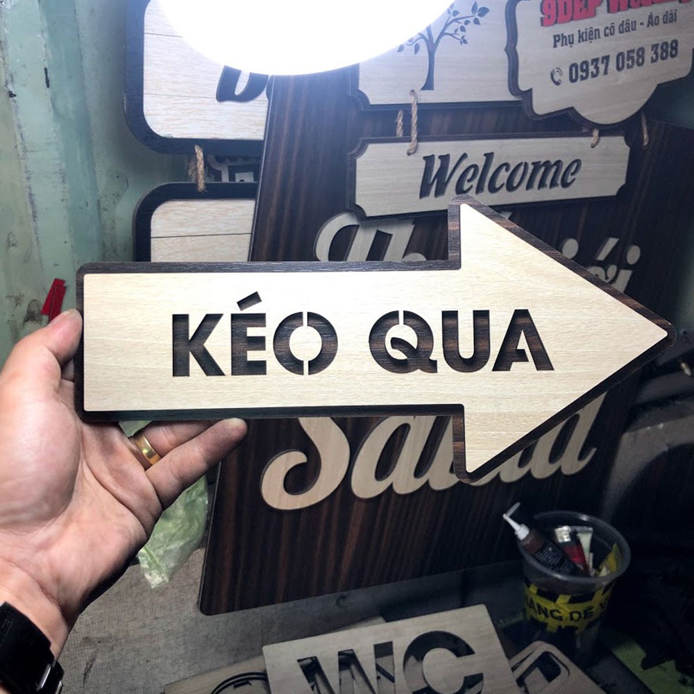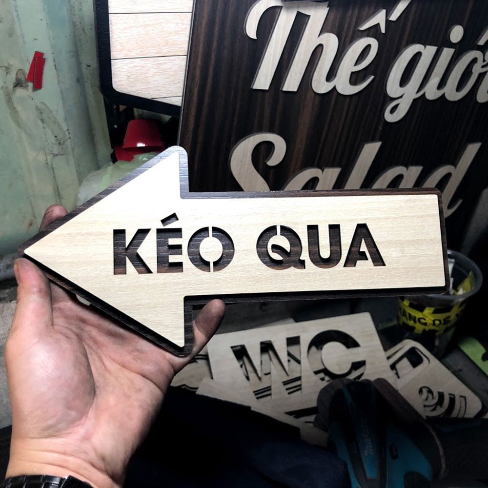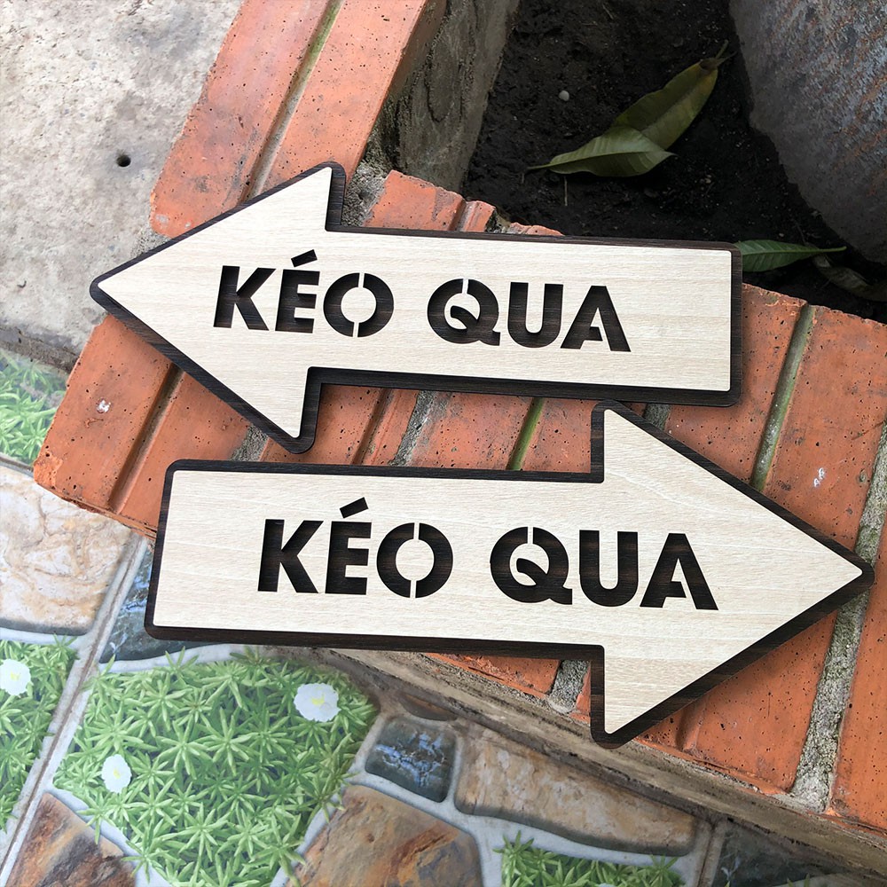 Bảng chỉ dẫn kéo cửa lùa hình mũi tên qua hướng trái phải* Được gia công trên chất liệu gỗ mặt VENEER cắt laser với độ mượt và sắc nét
