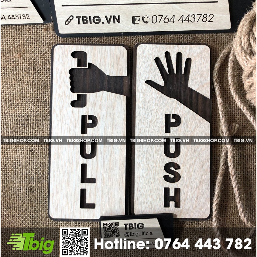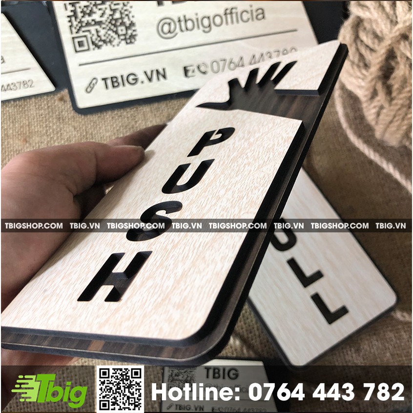 Nhà cửa & Đời sống > Trang trí nhà cửa > Khác || Bảng dán Pull và Push cách điệu bằng gỗ 2 lớp cắt laserCòn hàng