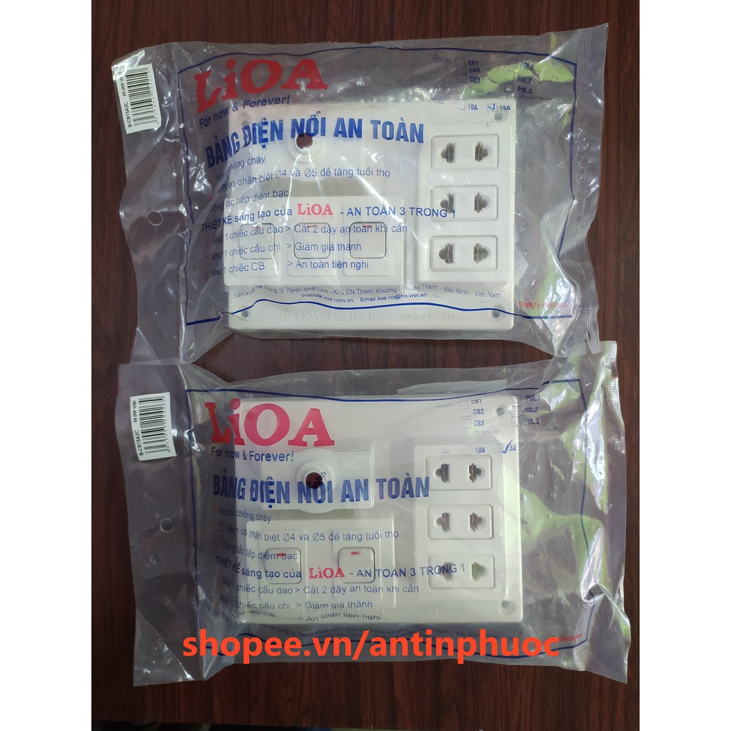 Sản phẩm của LIOA Hàng Việt Nam Chất Lượng cao - Bảng điện nổi LIOA ,Điện Quang ráp sẵn gồm 3 ổ cắm và công tắc - max 15A trang bị CB chống chạm chập , cháy nổ .