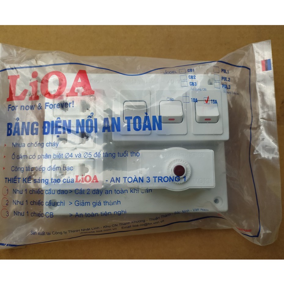 - bảng điện nổi LiOA được thiết kế gọn nhe. kiểu dáng đẹp, nó được kết hợp ổ cắm, công tắc, chiết áp quạt,,chiết áp đèn ( thay cho hộp số). và hệ thống bảo vệ bằng attomat.. và tất cả được đúc liền thành 1 khối.- vỏ làm băng nhựa chống cháy chịu va đập, chống biến dạng có độ cứng cao và được chế tạo theo phương pháp sản xuất đồ sứ. trên mặt bẳng điện cũng như từng thiết bị nhỏ đều có ghi thương hiệu ( LiOA). ,ổ cắm siêu bền vầ cắm được cả phích phi 4 và phi5 ,chân dẹt. .công tắc được kết cấu cần gạt kết hợp với, 2 tiếp điểm bạc và hoạt động dựa theo nguyên lý lực đồn bẩy nên rất nhẹ khi bật tắt.