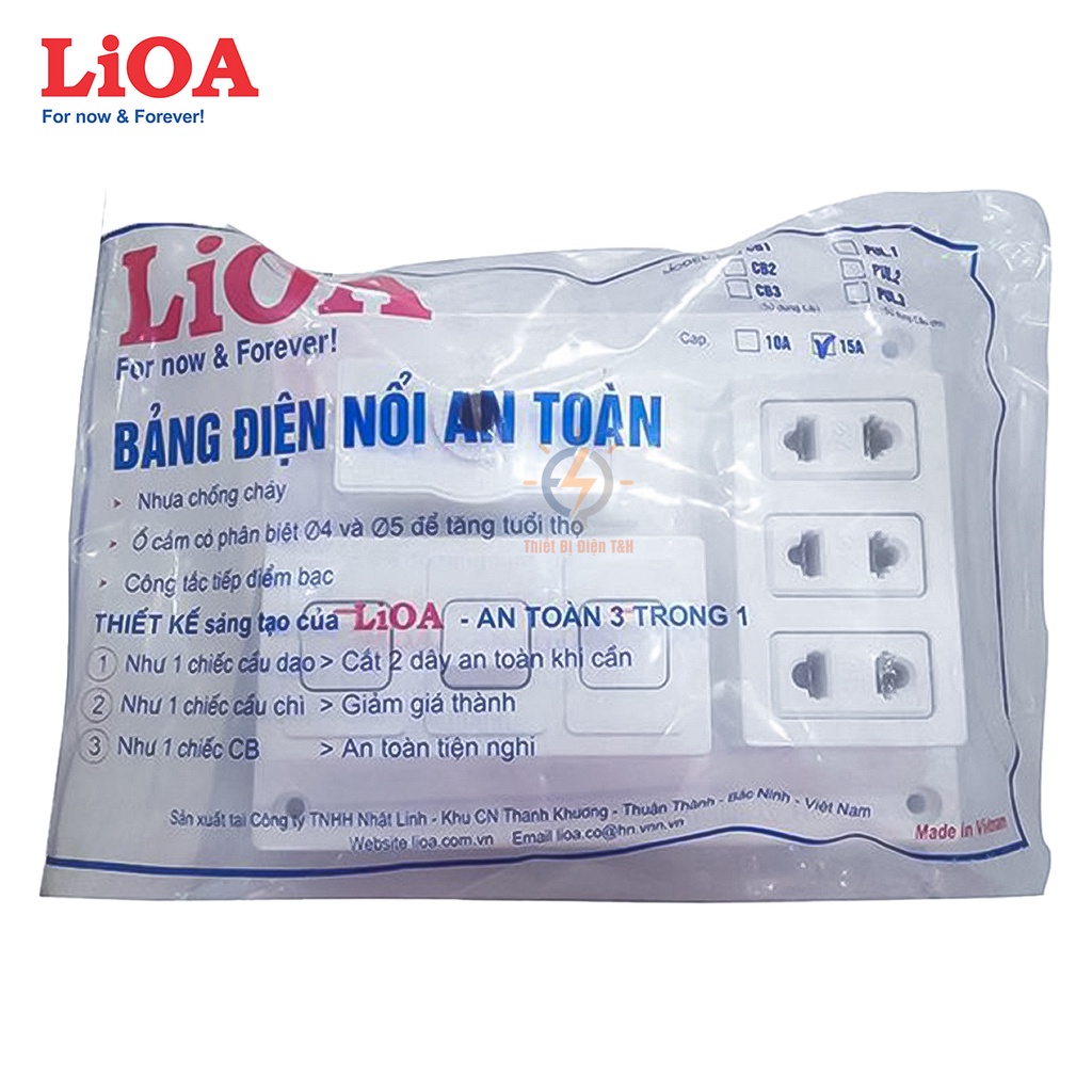 Thiết Bị Điện Gia Dụng > Mạch điện & Phụ tùng > Ổ cắm điện & Dây nối || Bảng điện nổi, táp lô điện, 15A, 3 ổ cắm, 3 công tắc, LIOA, B-CB15A3CCòn hàng