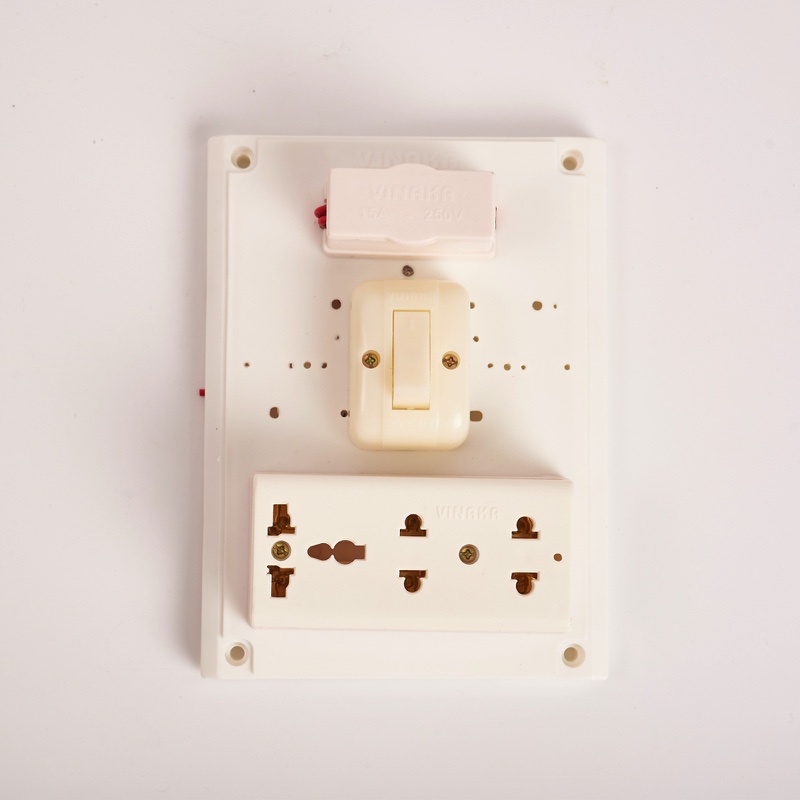 - Bảng điện nổi Vinaka B27 gồm 1 cầu chì bảo vệ nguồn điện, 1 ổ cắm lõi sứ chịu tải 6000w và 2 công tắc đèn chuyên lắp đặt sử dụng cho nhà ở, công ty, văn phòng, cơ quan…