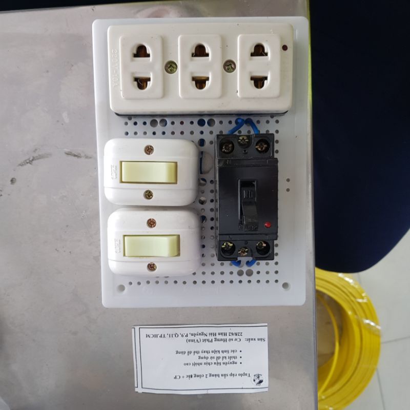 Thiết Bị Điện Gia Dụng > Mạch điện & Phụ tùng > Ổ cắm điện & Dây nối || Bảng Điện Ráp Sẵn - Taplo lắp sẵn 2 công tắc 1 ổ cắm và aptomat VinaCòn hàng