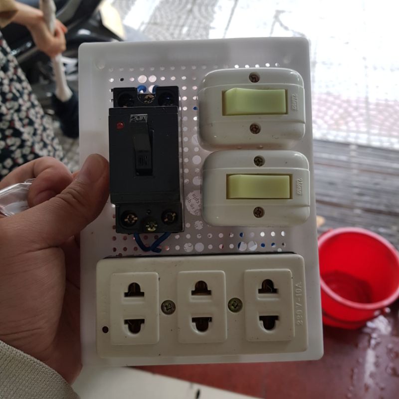 #bangdien #taplo #bangrapBảnh điện taplo ráp sẵn gốm 1 aptomat 30A, 2 công tăc, 1 ổ cắm 3 ổ điện + ticke