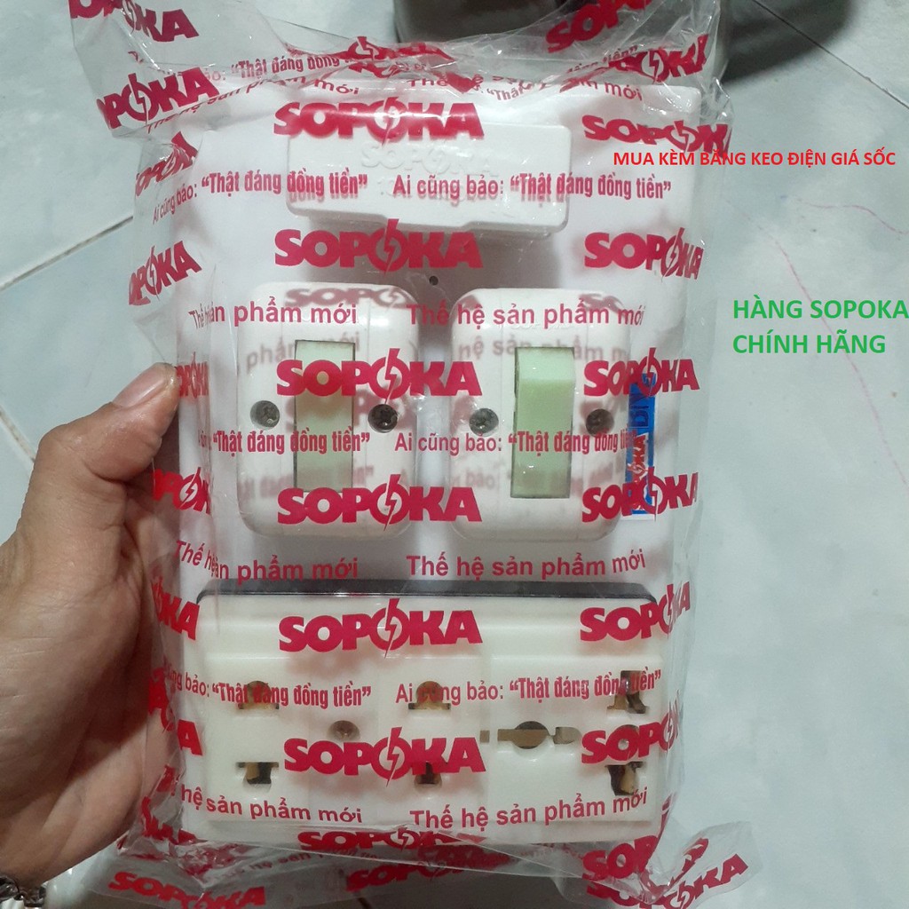 Bảng điện Sopoka làm sẵn 3 ổ cắm 2 công tắc 1 cầu chì HÀNG CHÍNH HÃNG