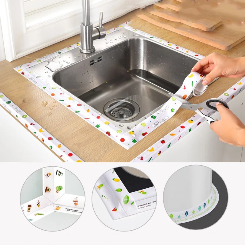 Băng dính dán mép viền tường chống bám bẩn giúp cho sàn nhà, mép bàn, cạnh bếp,...sạch sẽ- Nhà bếp là nơi giữ lửa cho gia đình bằng những bữa cơm ngon lành nên cũng là nơi thường xuyên gặp các vấn đề về nước, dầu mỡ và nấm mốc.