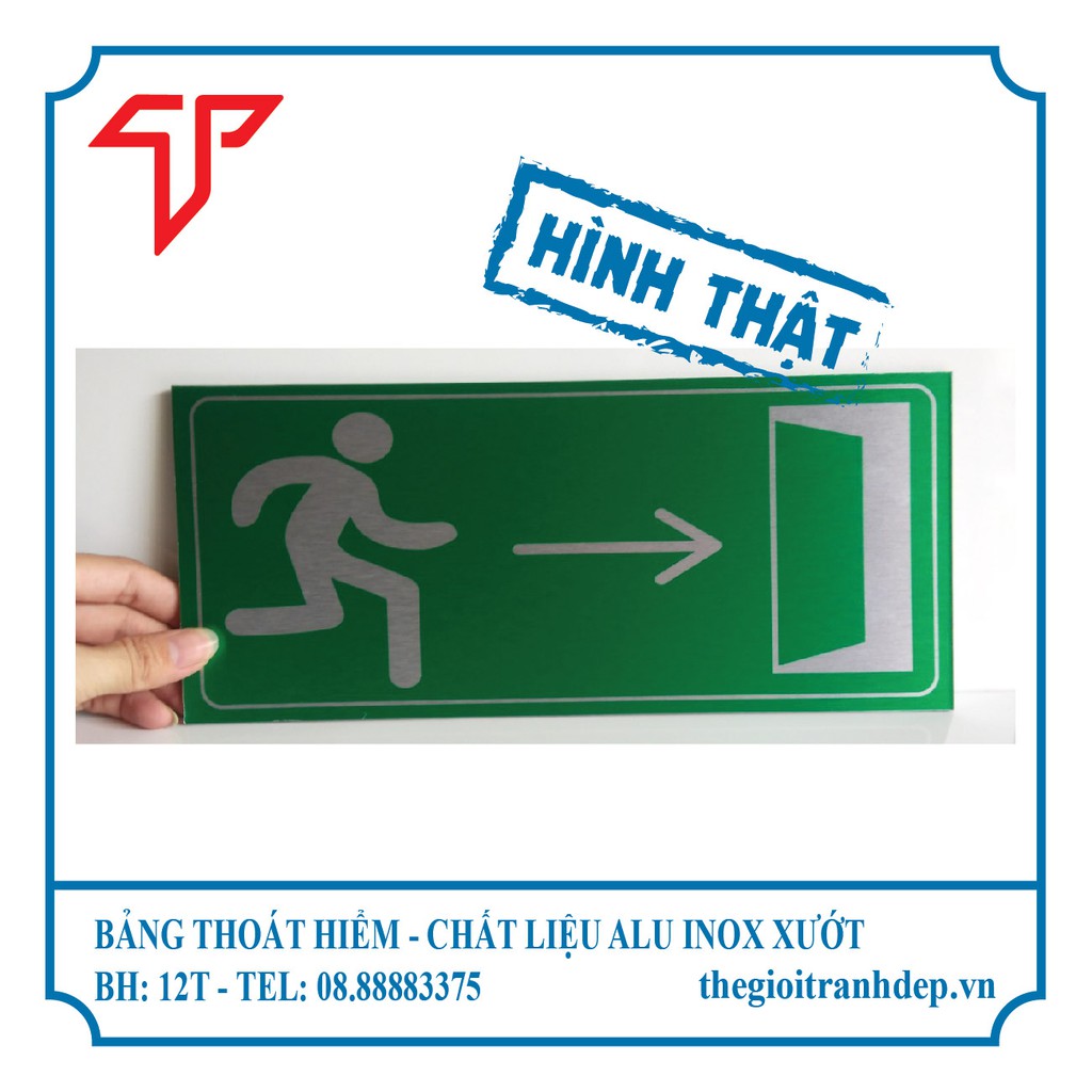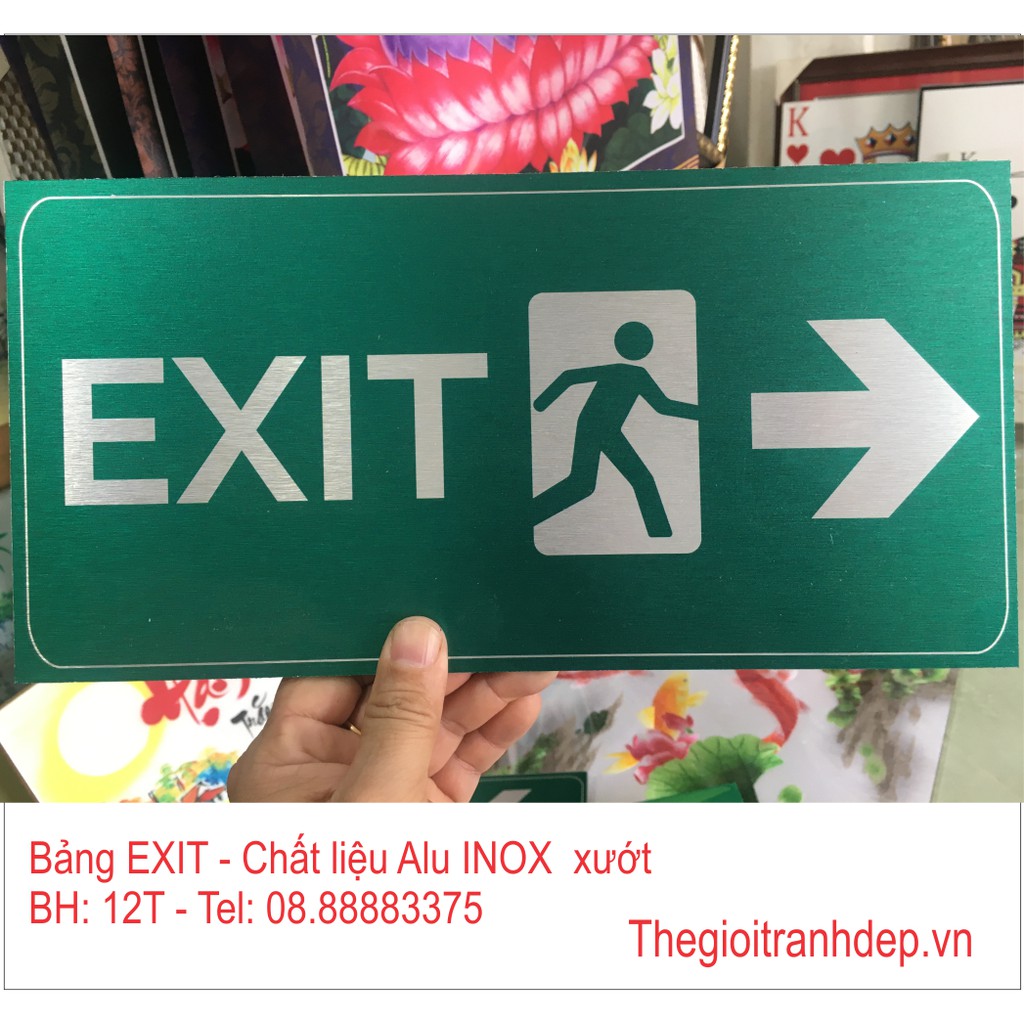 Bảng exit chỉ dẫn lỗi thoát hiểm được làm bằng alu inox mờ, tạo độ tương phản, đẹp và chắc chắn dán trực tiếp vào tường bằng keo 2 mặt