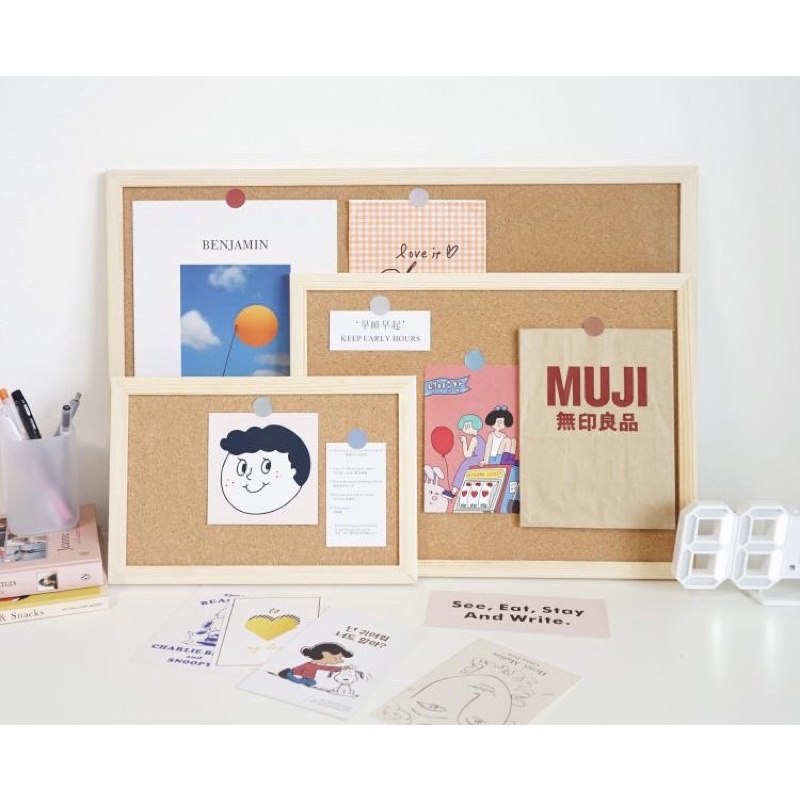 - Bảng gỗ bần ghim ghi chú, treo ảnh, postcard | Trang trí bàn học(Tặng kèm ghim + dây treo + móc + sticker)