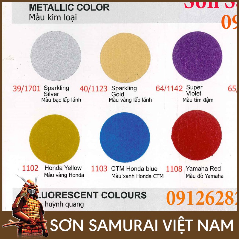 Bảng Giá Sơn Samurai - 12 Mã Màu Kim Loại Sơn Xịt Samurai