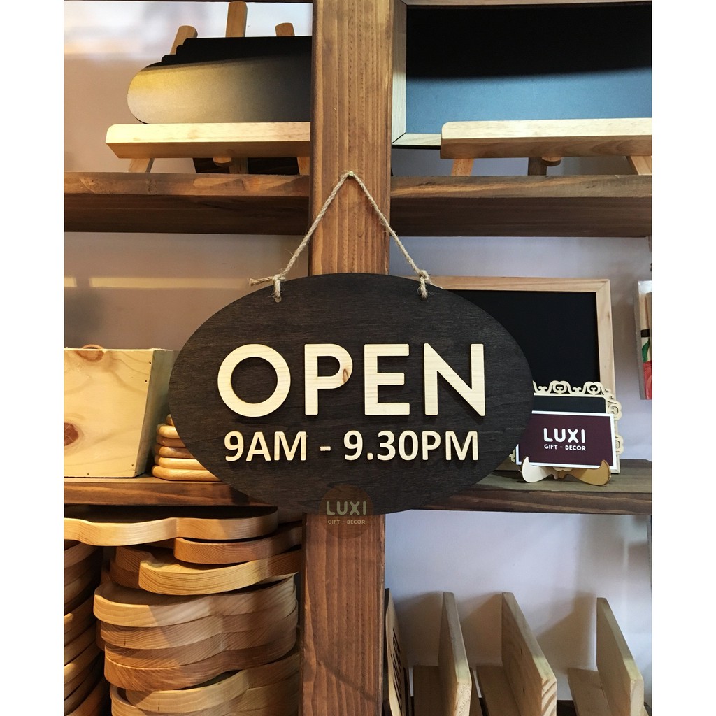 Nhà cửa & Đời sống > Trang trí nhà cửa > Khác || Bảng gỗ 2 mặt Open, closed (9am-9.30pm)Còn hàng