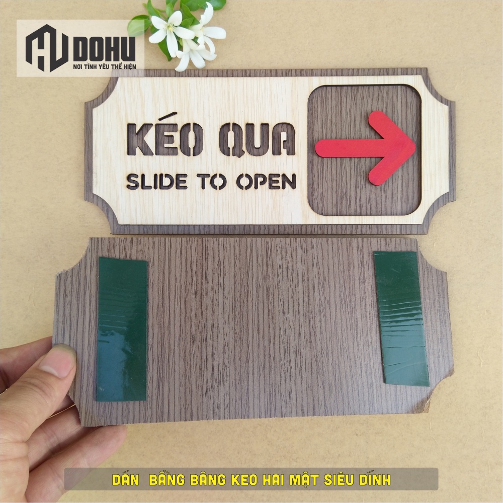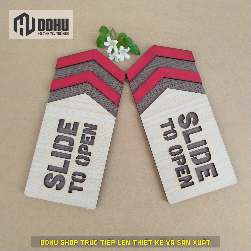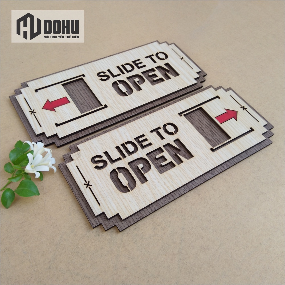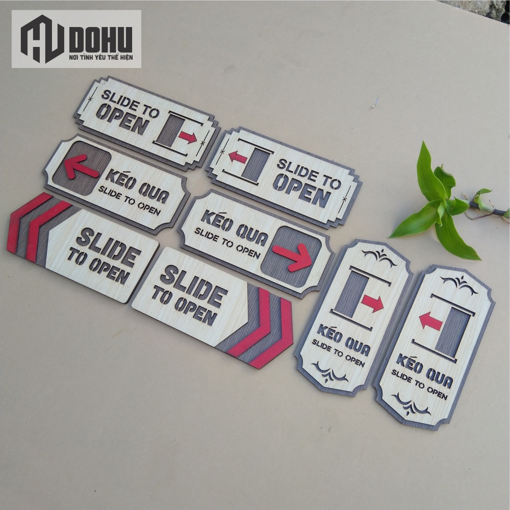 Mến chào bạn!Cám ơn bạn đã đến với sản phẩm Bảng Chỉ Dẫn Kéo Qua Gắn Cửa (Slide to Open) Bằng Gỗ Vintage Decor Cắt Tia Laze (Có Sẵn Băng Keo 2 Mặt Phía Sau) của DOHU Shop!
