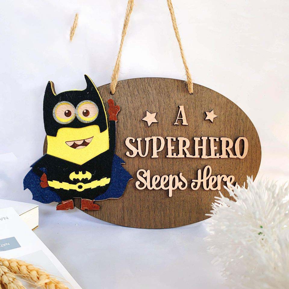 Bảng gỗ CÔNG CHÚA & SIÊU NHÂN treo Cửa, treo Phòng cho bé Siêu dễ thương