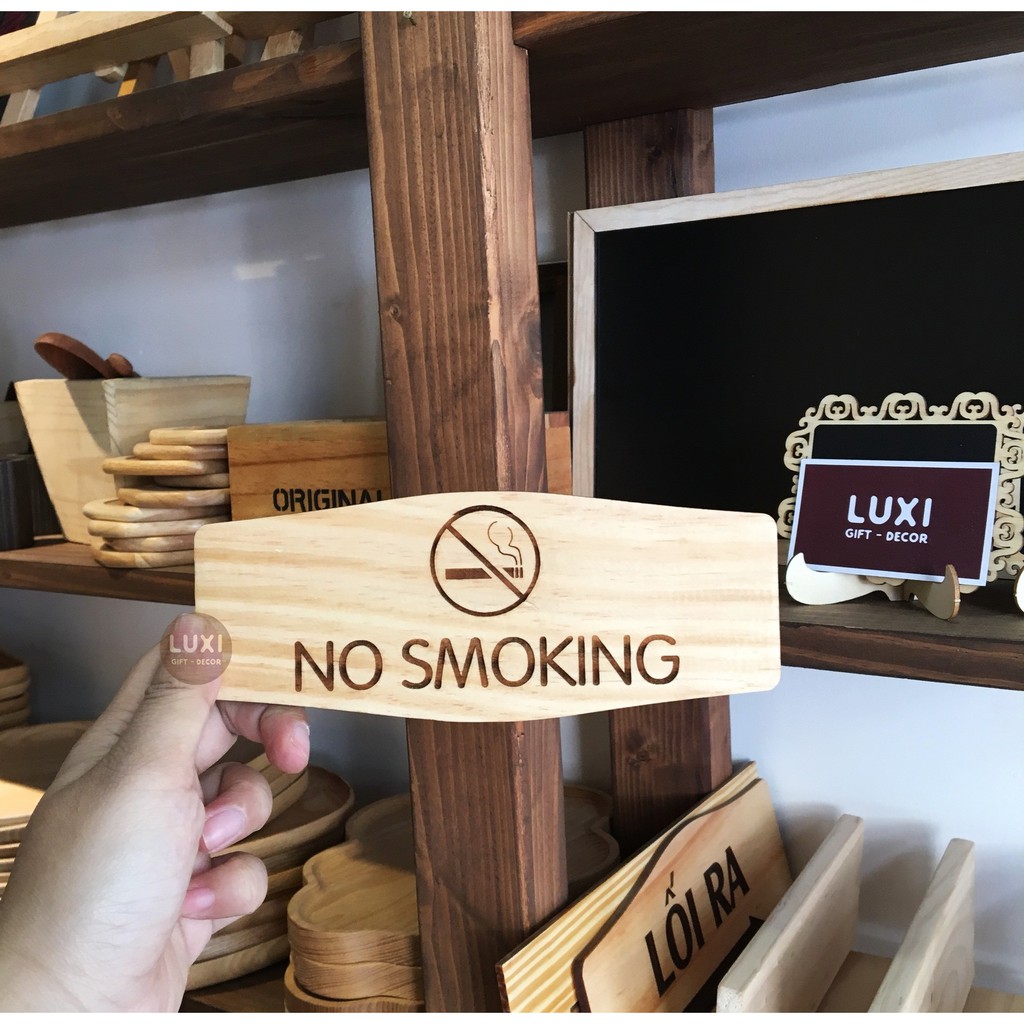 Bảng cấm hút thuốc, no smoking của shop sẽ giúp cho những ai hút thuốc nơi công cộng, cảm thấy từ bỏ điếu thuốc một cách dễ dàng và có ý thức hơnBảng được làm từ chất liệu gỗ và không độc hại, thân thiện với môi trường.