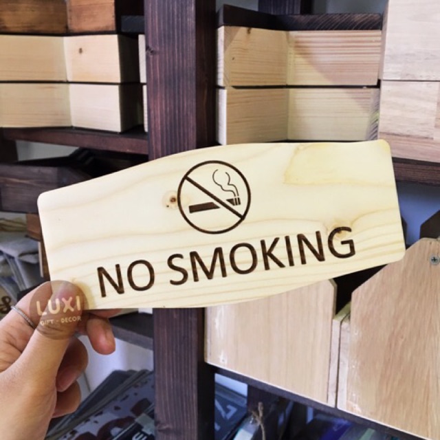 Bảng cấm hút thuốc, no smoking của shop sẽ giúp cho những ai hút thuốc nơi công cộng, cảm thấy từ bỏ điếu thuốc một cách dễ dàng và có ý thức hơnBảng được làm từ chất liệu gỗ và không độc hại, thân thiện với môi trường.