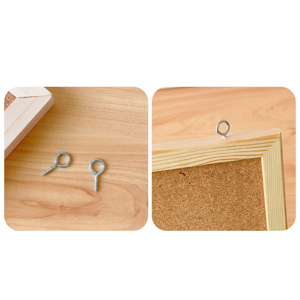 - Kích thước: Xem hình. 1 set gồm 1 bảng, 1 dây treo, 2 ốc treo, 1 đồ đính tường, 8 cái ghim, 1 set postcard, 1 tấm sticker tròn (random mẫu)