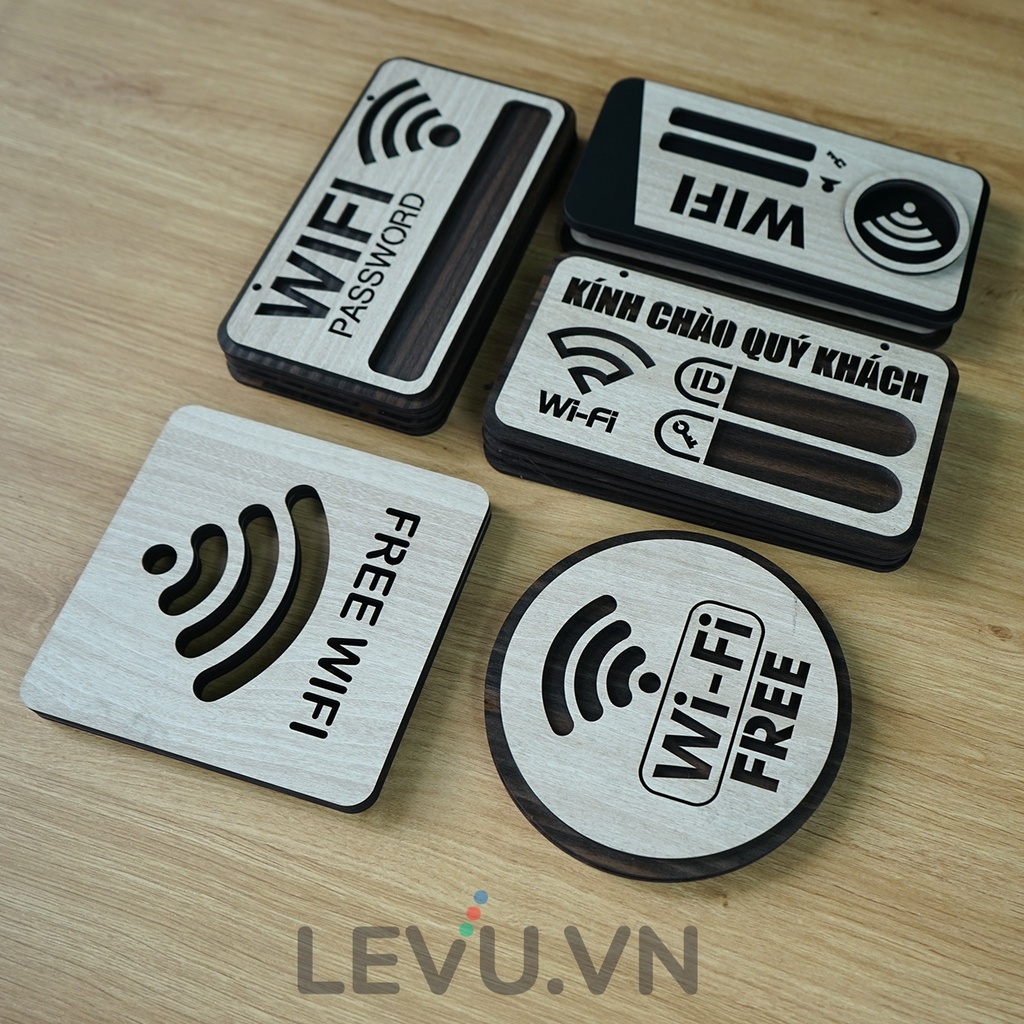 Bảng gỗ password wifi, bảng wifi bằng gỗ ghi thông tin wifi cho quán là một dạng bảng hiệu nhỏ mini dùng để ghi cung cấp thông tin để vào nhận wifi miễn phí thường thấy trong các nhà hàng, quán ăn, tiệm cafe, cửa hàng trà sữa, phòng khách lễ tân trong công ty,... Bảng wifi giúp tiết kiệm hời gian và tránh sự ngần ngại hỏi thông tin cho mọi người.✪ Sản phẩm bảng gỗ password wifi hay còn gọi tóm tắt là bảng wifi tại LEVU Shop mà bạn đang xem hình ảnh và video đều là hình thật do shop tự chụp thực tế cam kết 100% giống như quảng cáo, cam kết hoàn tiền 100% nếu khi bạn nhận hàng không đúng mô tả hoặc không đúng chất lượng, sai mẫu.