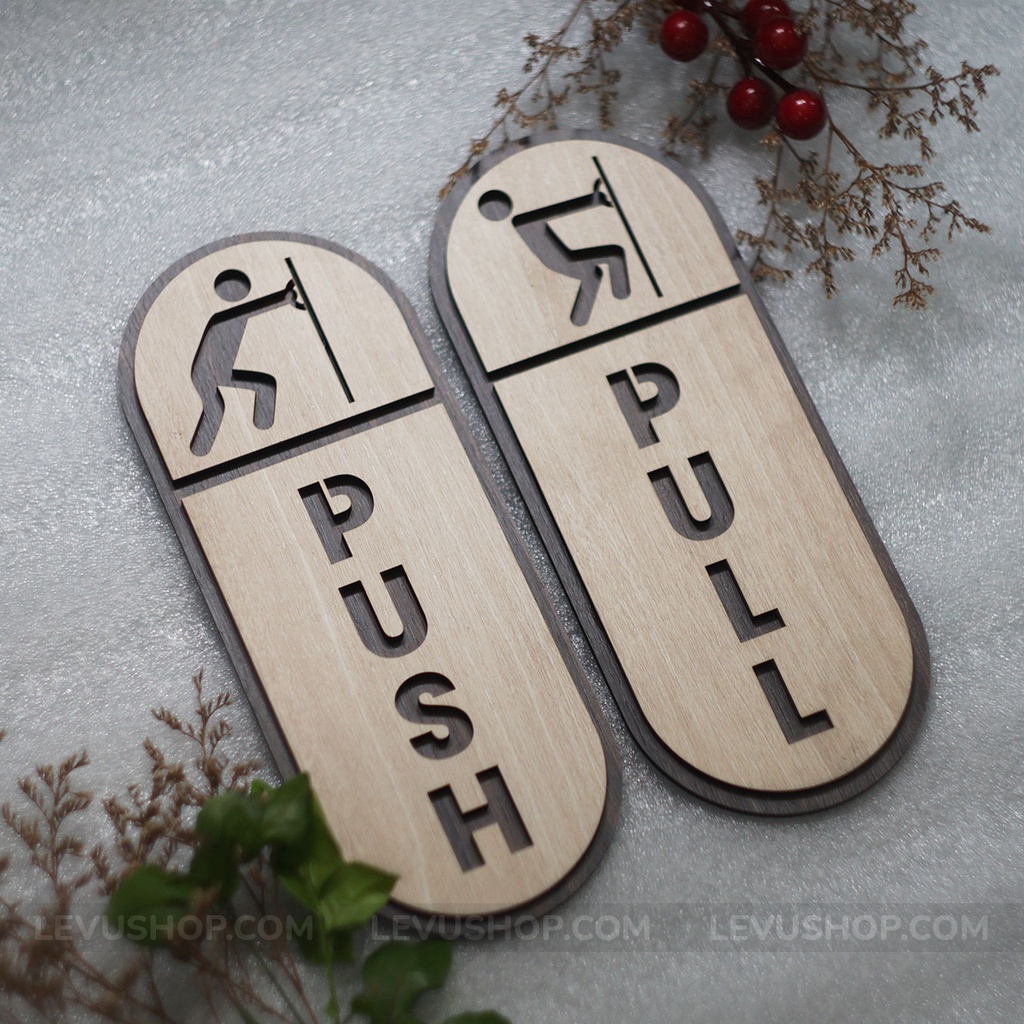 Nhà cửa & Đời sống > Dụng cụ & Thiết bị tiện ích > Cửa & cửa sổ || Bảng Gỗ Pull Push khắc laser décor cửa kính LEVU-TP03Còn hàng