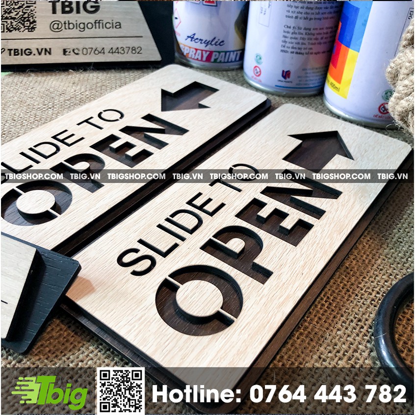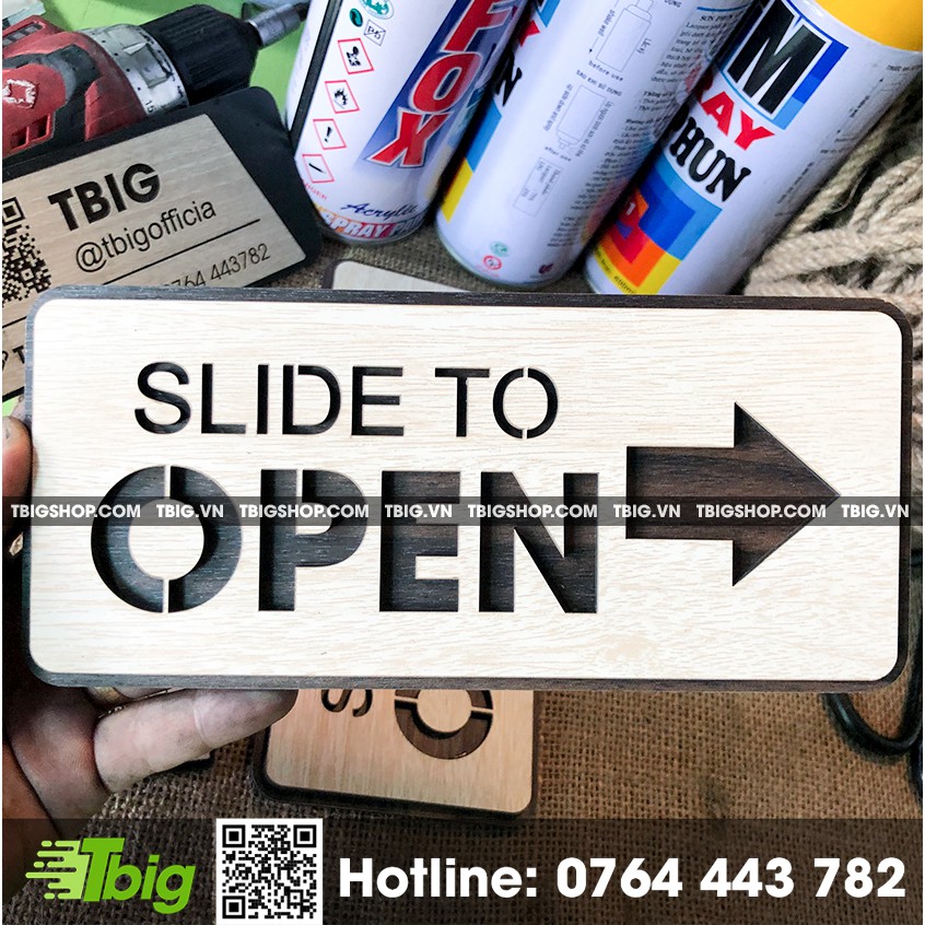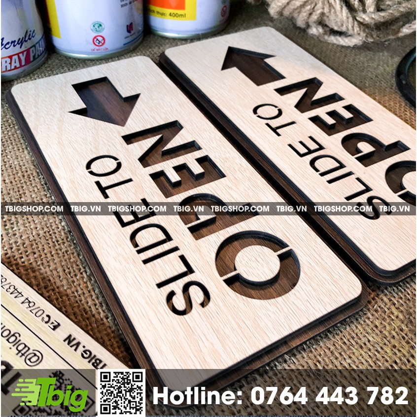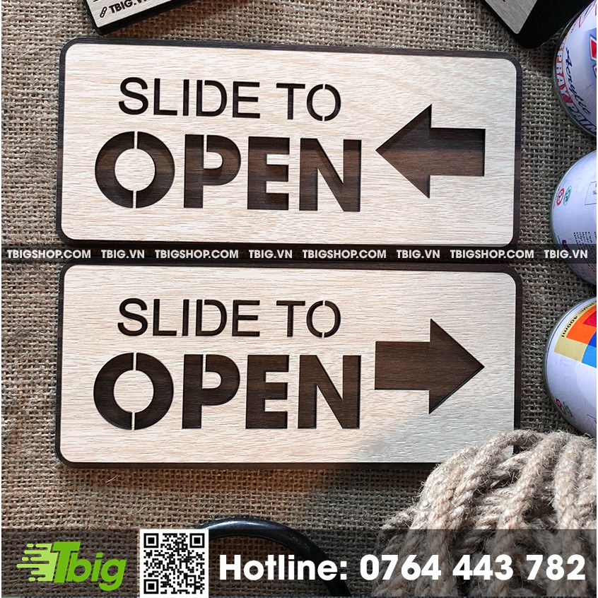Bảng gỗ Slide to open (hướng dẫn mở cửa) gắn cửa