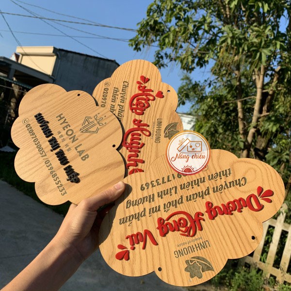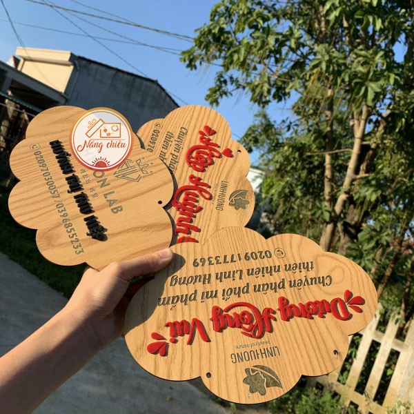 - Bảng hiệu được làm từ chất liệu gỗ tự nhiên