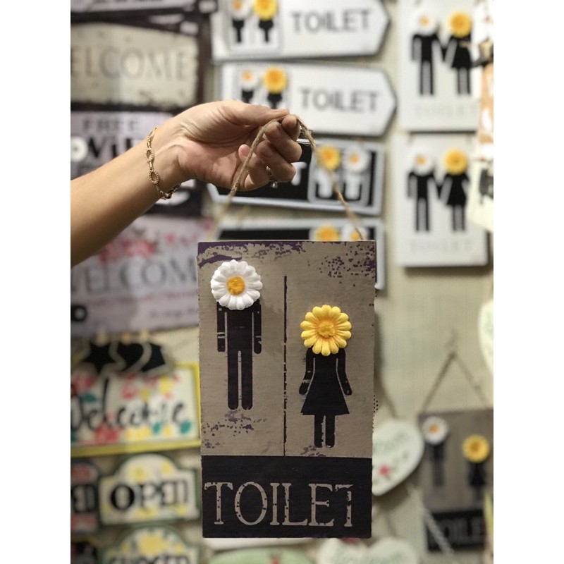- Bảng được làm từ gỗ và được cắt tỉ mĩ, có dáng kèm trên bảng là 1 hoa cúc họa mi vô cùng xinh xắn nè , dùng để treo trước cửa toilet vừa tiện lợi vừa giúp cho không gian của bạn thêm xinh xắn. Thích hợp cho không gian quán hay là chính ngôi nhà của bạn